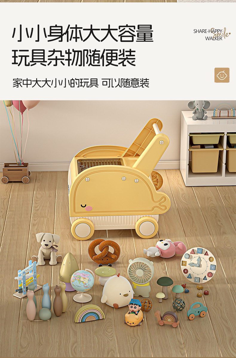 学步车家用儿童宝宝零食玩具多功能储物收纳箱萌趣婴儿助步小推车