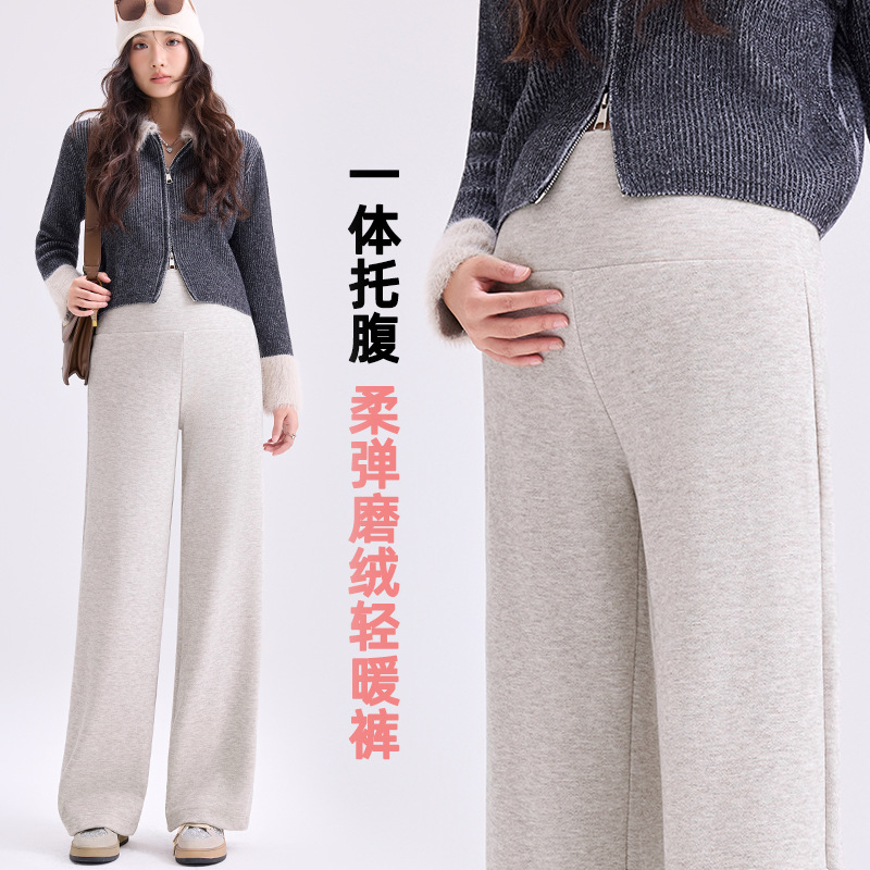 孕妇阔腿裤秋冬外穿休闲显瘦磨绒轻暖裤一体托腹宽松时尚孕妇秋装