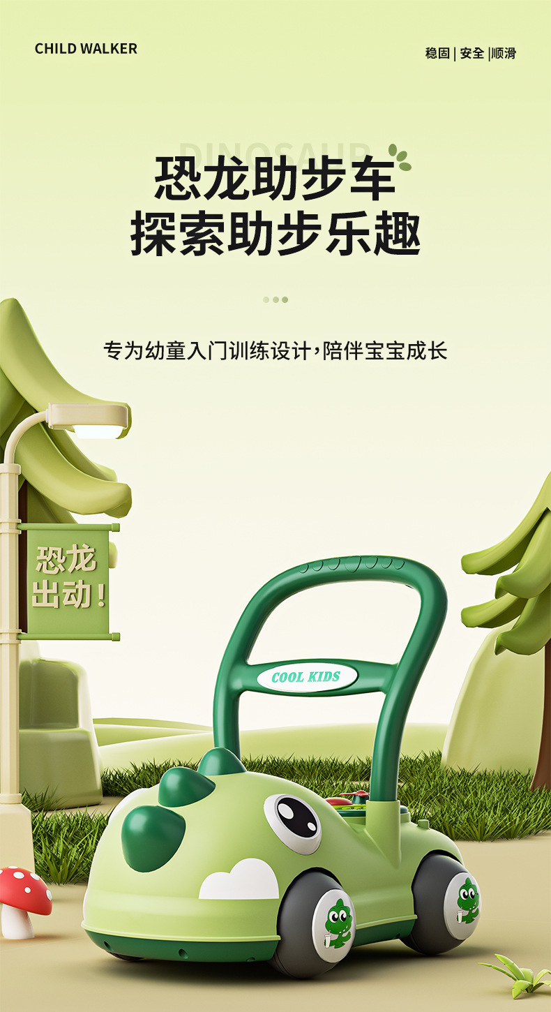 新款恐龙手推车宝宝玩具1-3岁室内多功能轻便婴儿推车儿童学步车