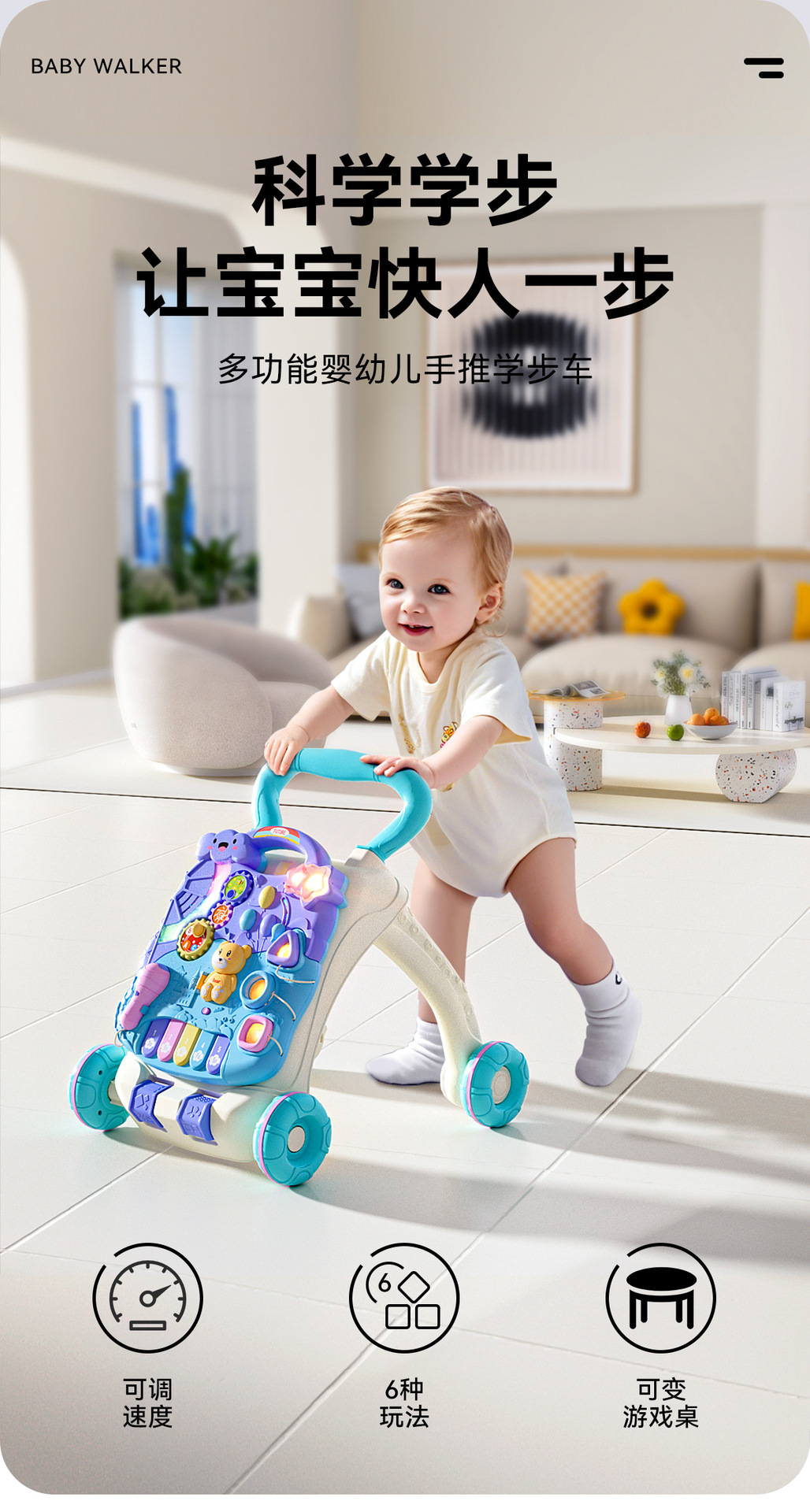 婴儿学步车防o型腿多功能防摔防侧翻女孩男宝宝助步调速推车玩具