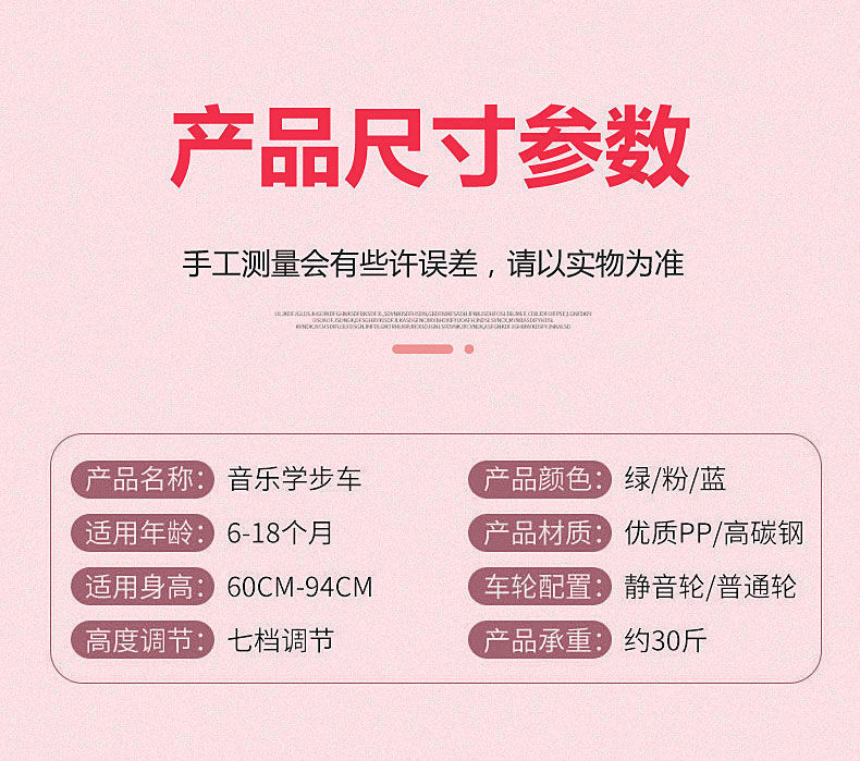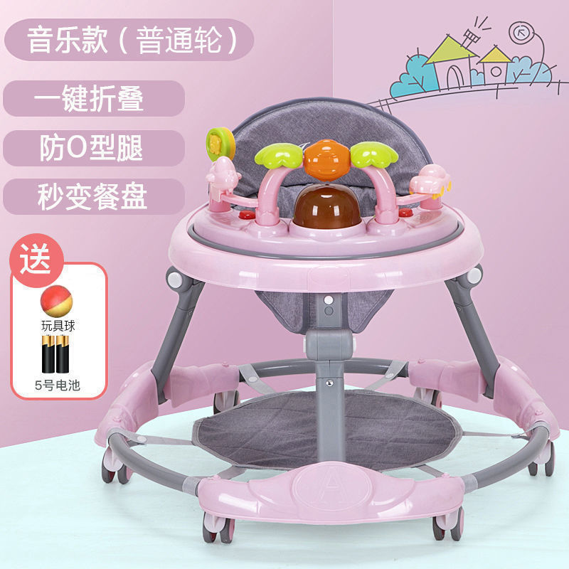 - 樱花粉-升级版6档调节-秒变餐桌-静音轮+玩具音乐+脚垫+推把+礼包