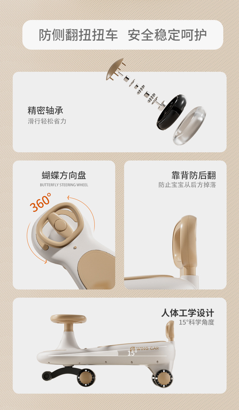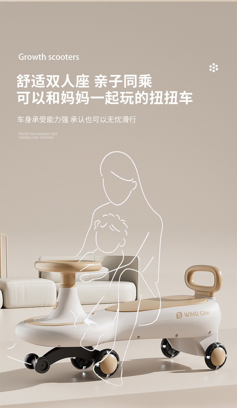 儿童溜溜车防侧翻男女宝宝摇摆车滑行车静音轮灯光音乐婴儿扭扭车