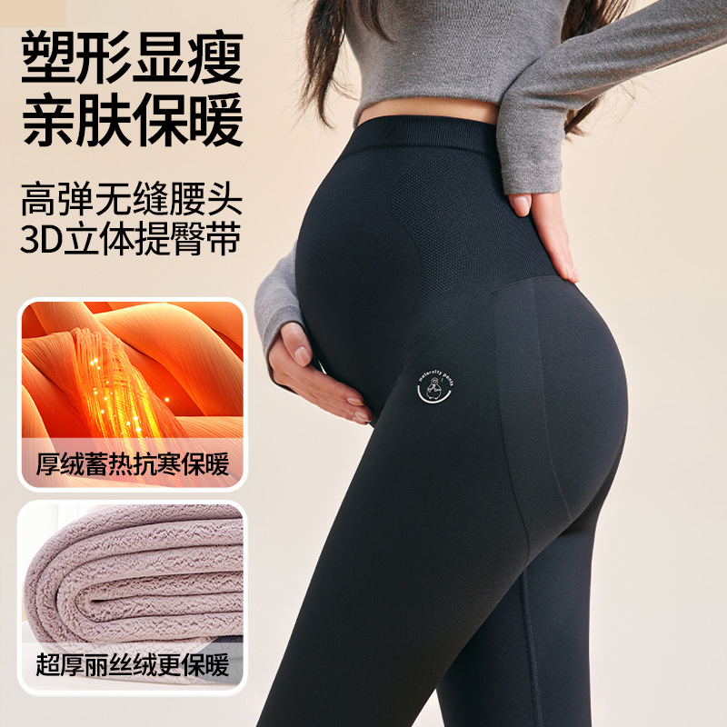 无痕孕妇打底裤女2025新款秋冬季外穿加绒加厚保暖高腰大码鲨鱼裤