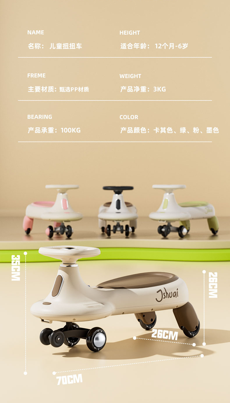 扭扭车儿童1一6岁新款防侧翻大人可坐摇摆车静音轮男女宝宝溜溜车