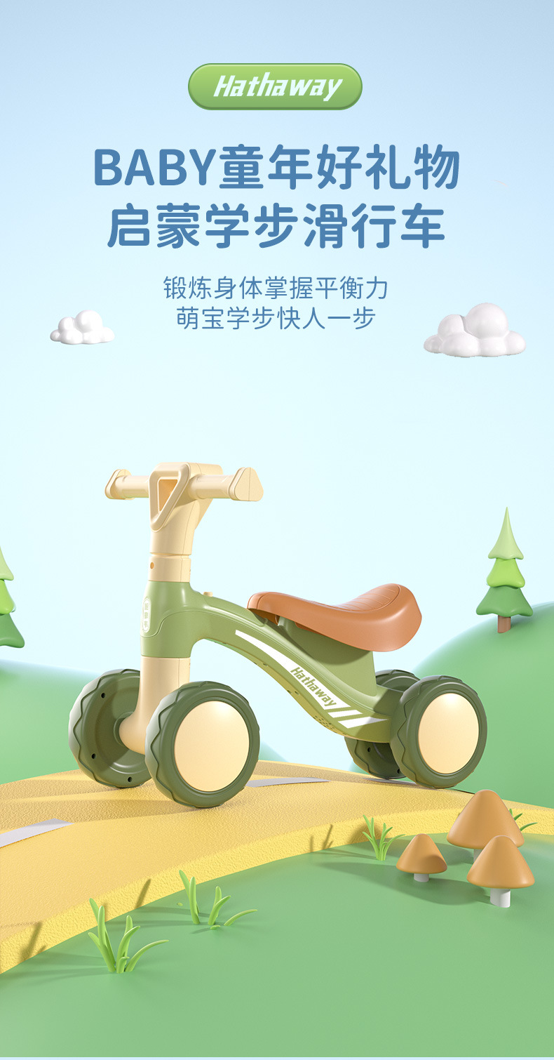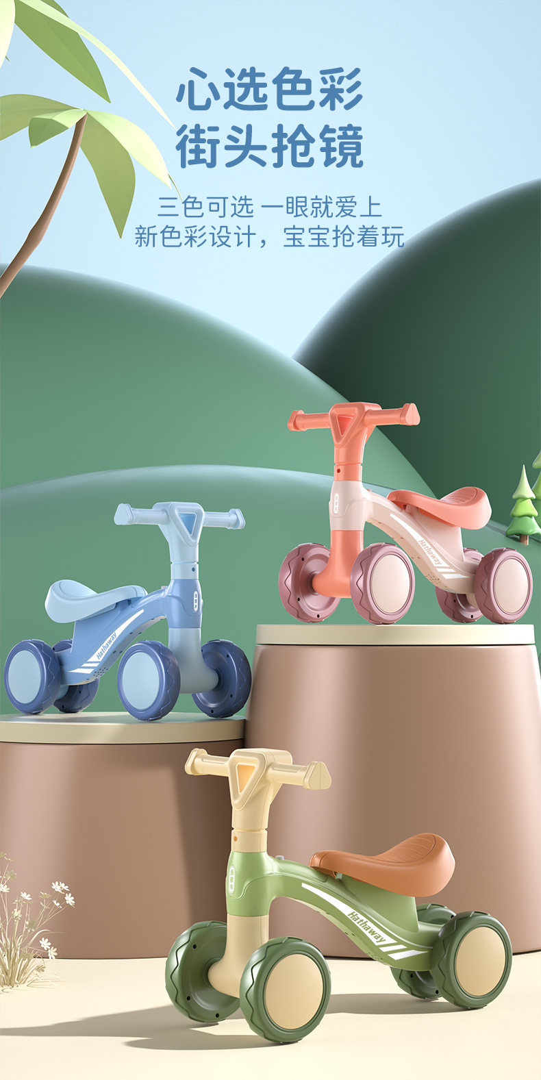 儿童四轮平衡车小孩无脚踏溜溜车滑步车婴儿学步宝宝滑行车1-3岁