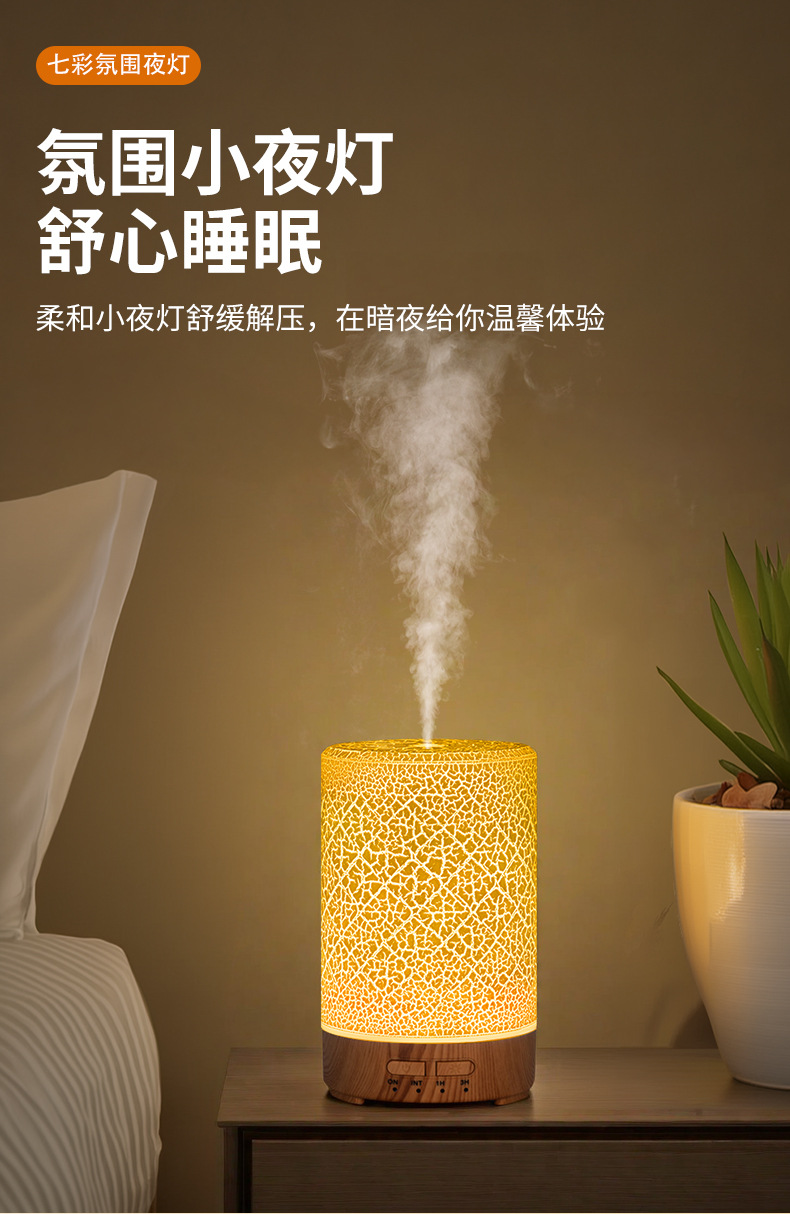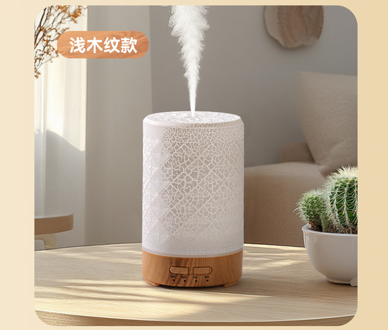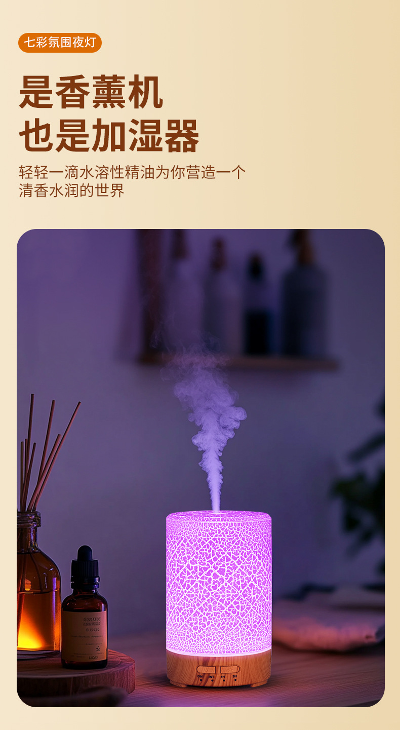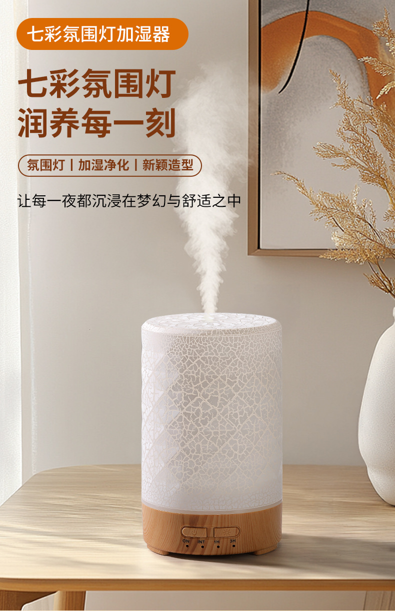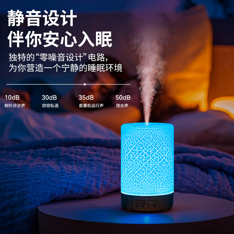 七彩木纹裂纹超声波加湿器桌面usb家用大容量卧室小型台灯香薰机
