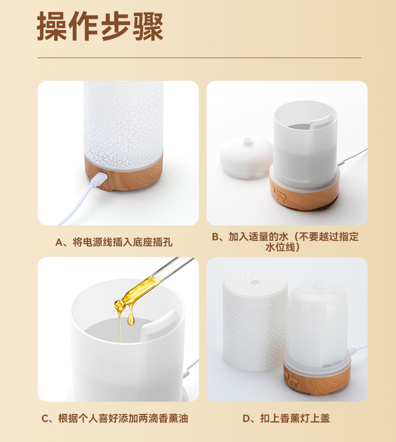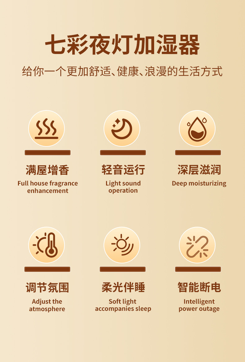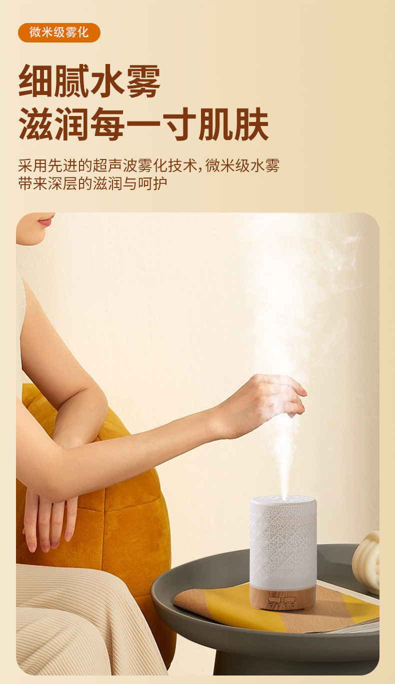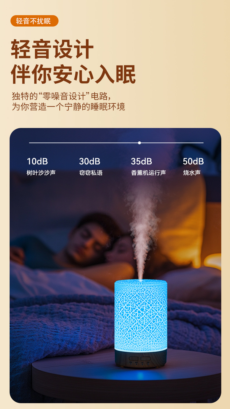 七彩木纹裂纹超声波加湿器桌面usb家用大容量卧室小型台灯香薰机