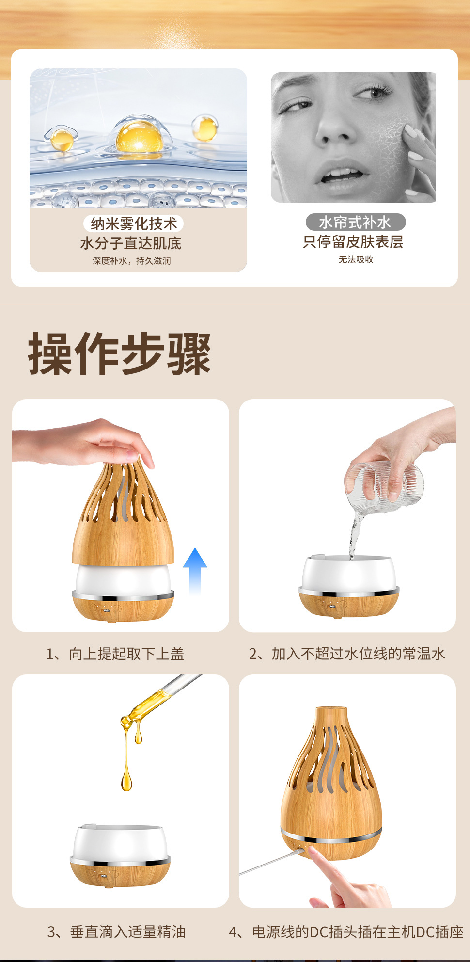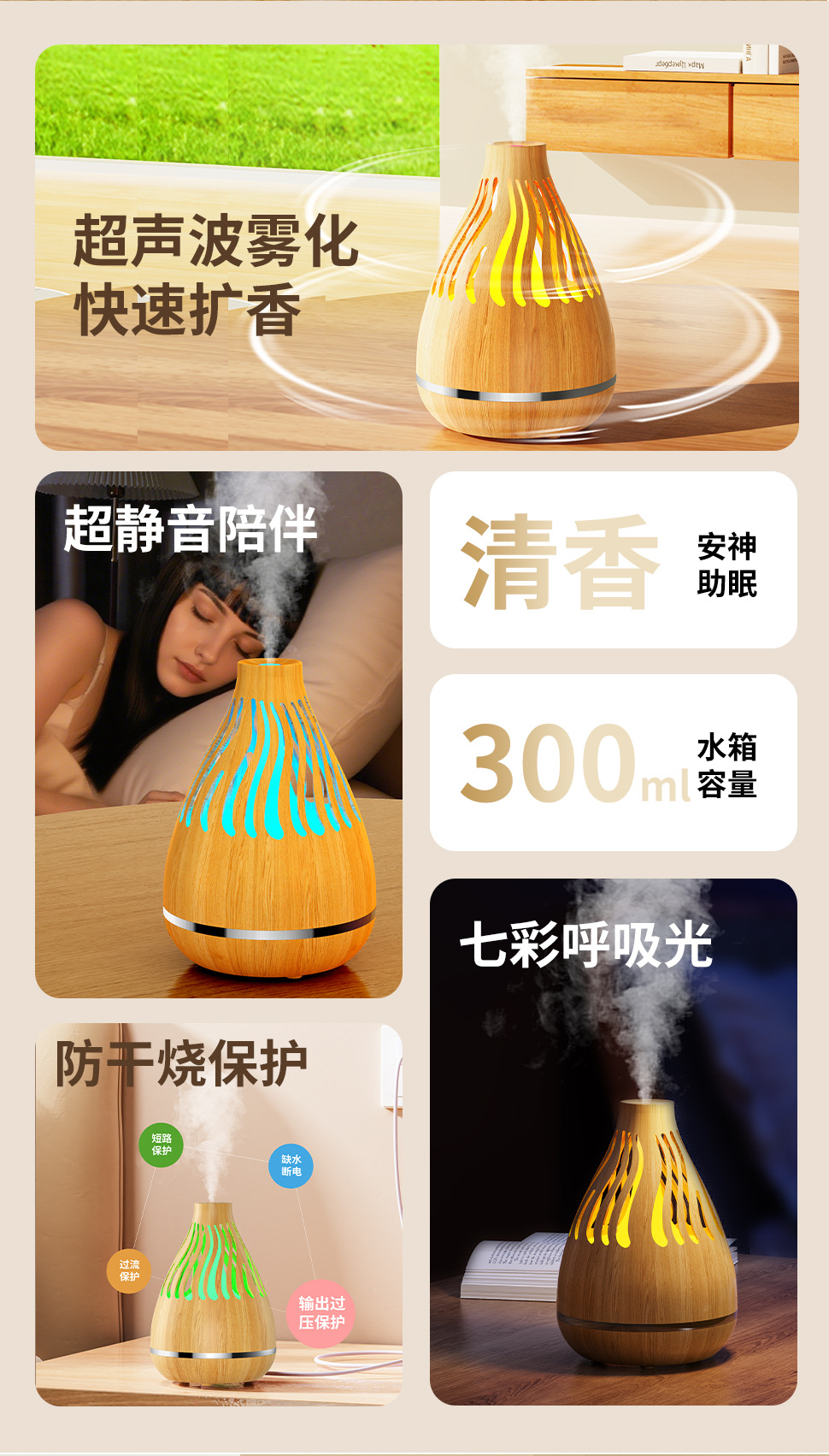 超声波木纹香薰机喷雾机插电香薰灯卧室熏香机精油灯香薰加湿器