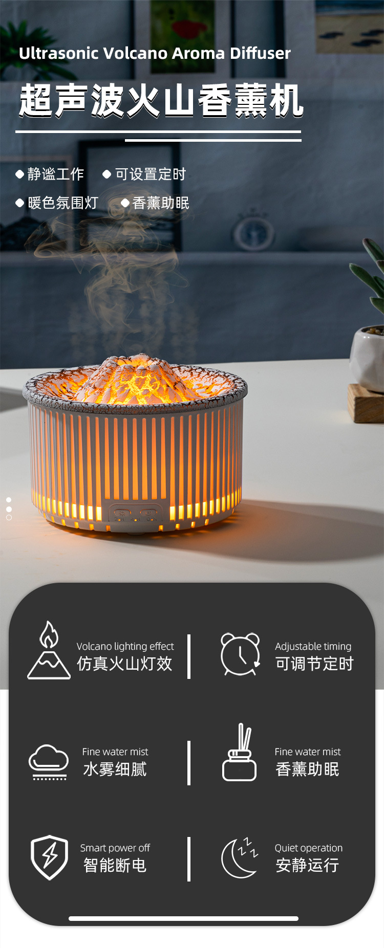 仿真火焰加湿器家用电器火山香薰机火焰香薰灯卧室桌面扩香氛