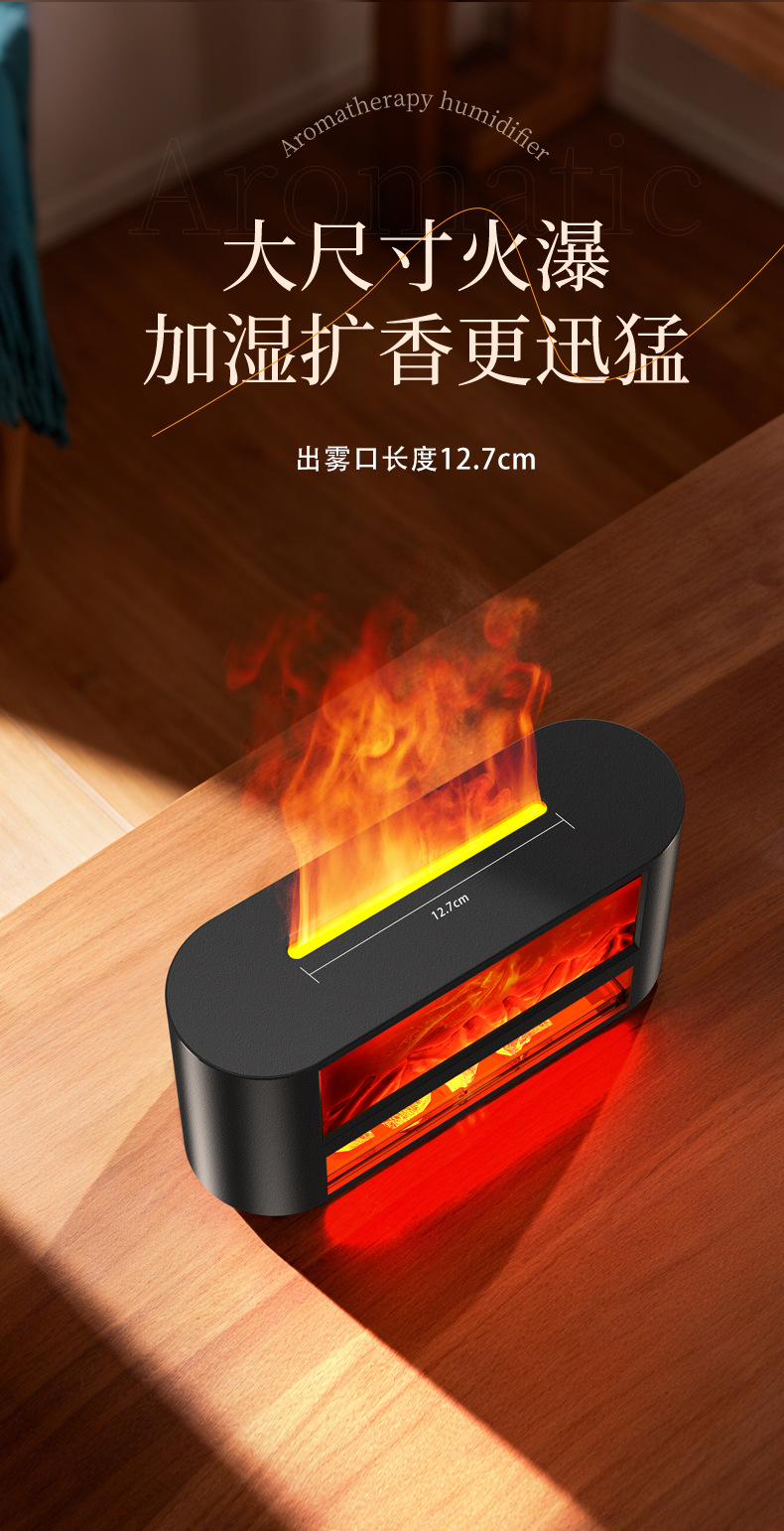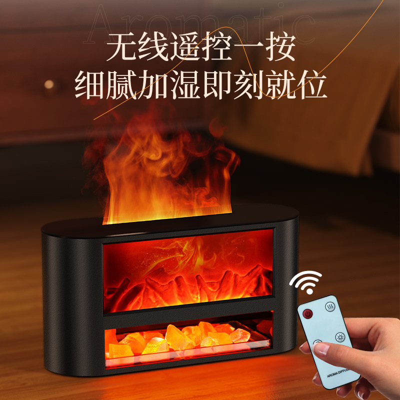 壁炉火焰香薰机桌面遥控香氛机七彩火焰氛围灯喷雾加湿器