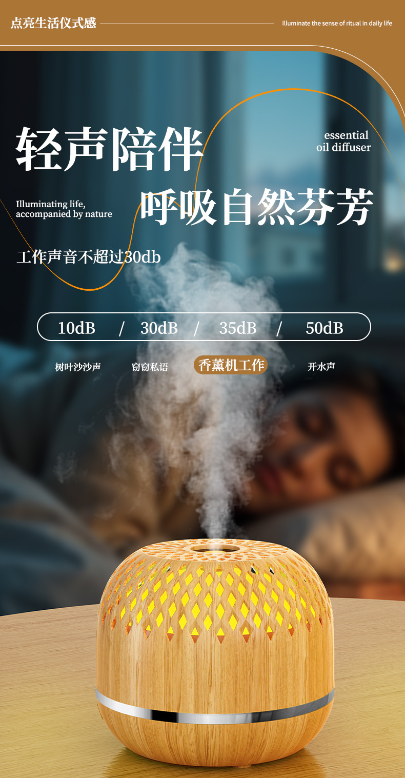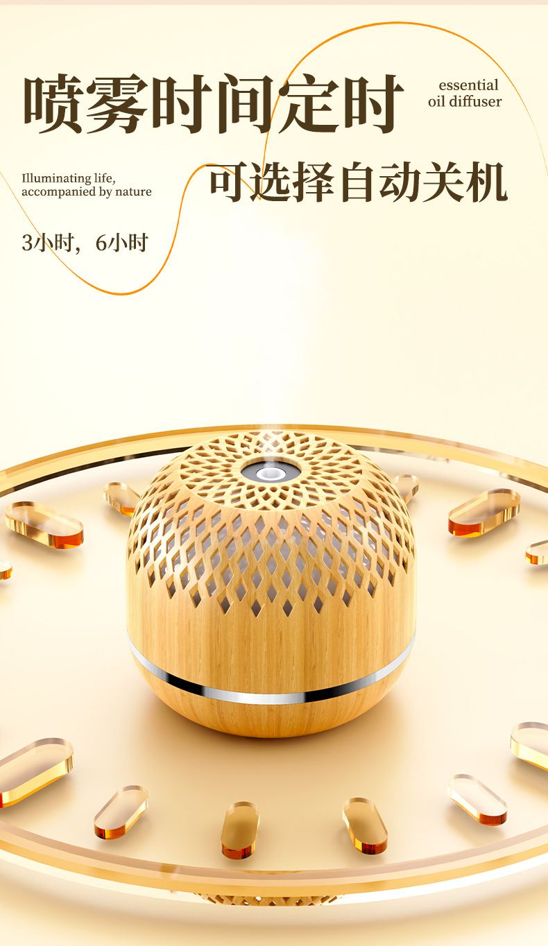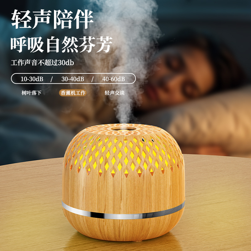 香薰加湿器USB木纹七彩灯喷雾香薰机精油香氛空气加湿喷香机