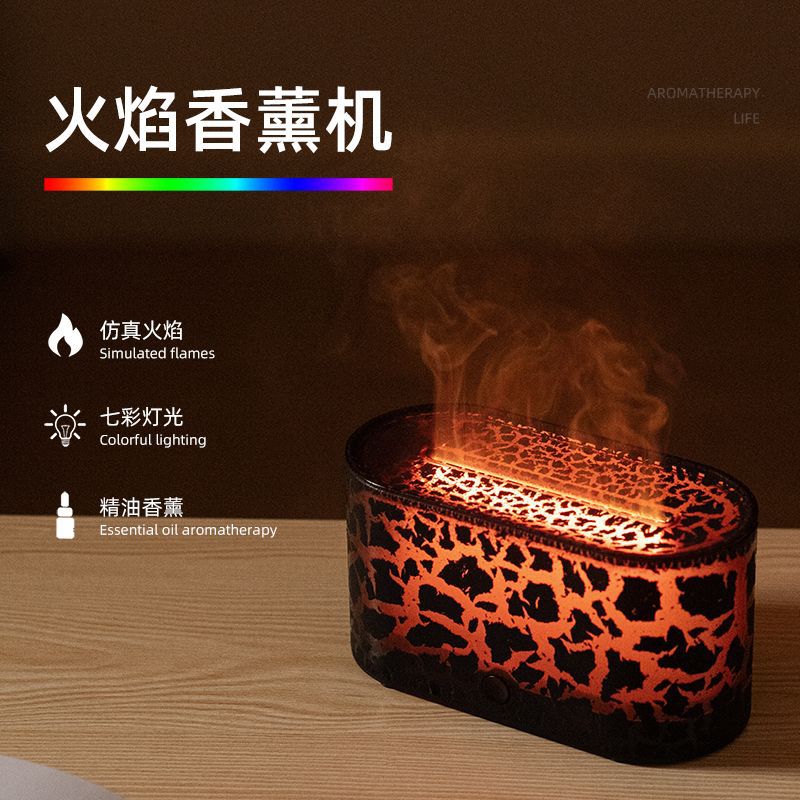 超声波香薰机七彩火焰氛围灯家用办公桌面火焰加湿器
