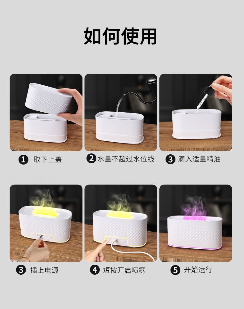 2025新款创意七彩迷你香薰机自动喷雾usb香薰机家用火焰加湿器