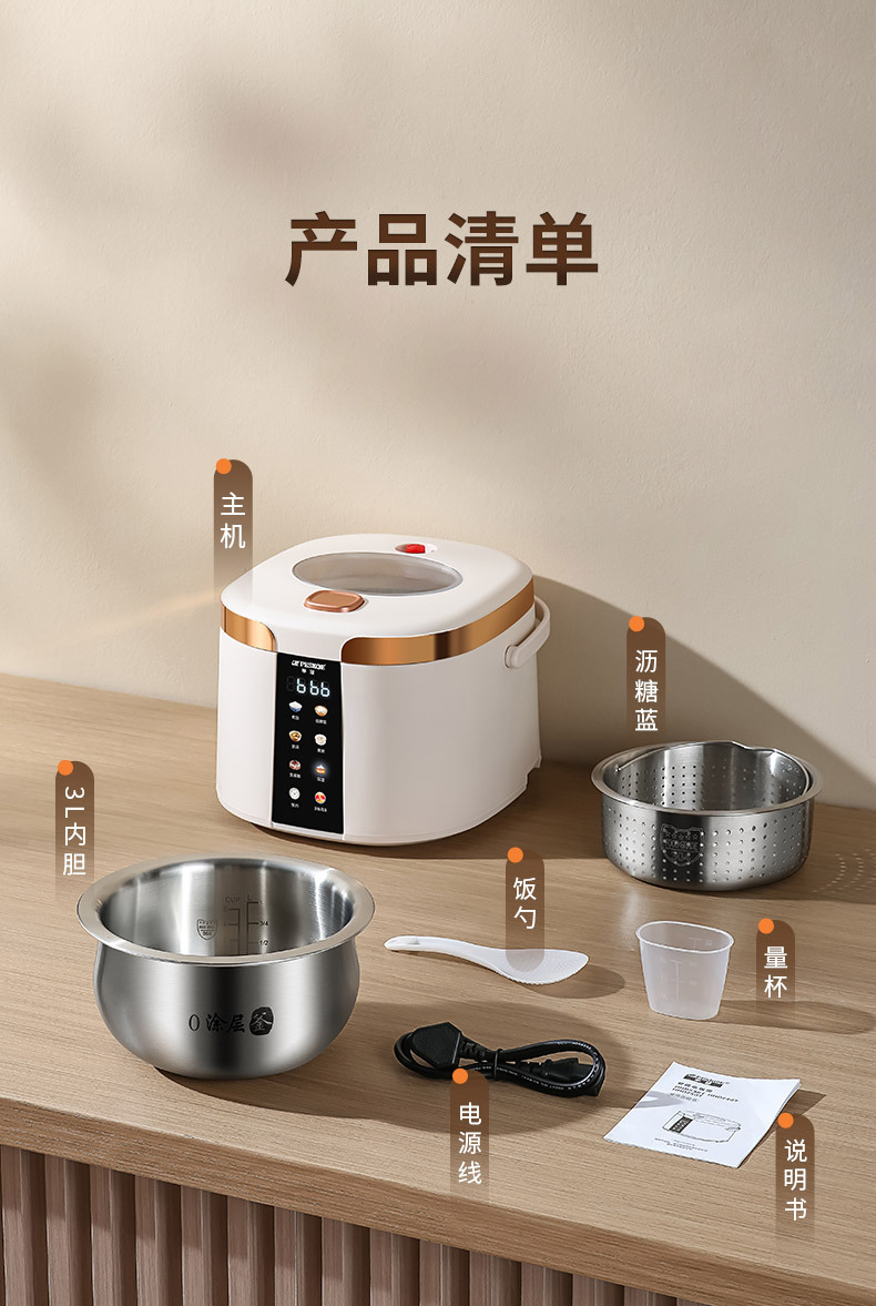 - 3L【升级款】304不锈钢釜胆+塑料蒸笼