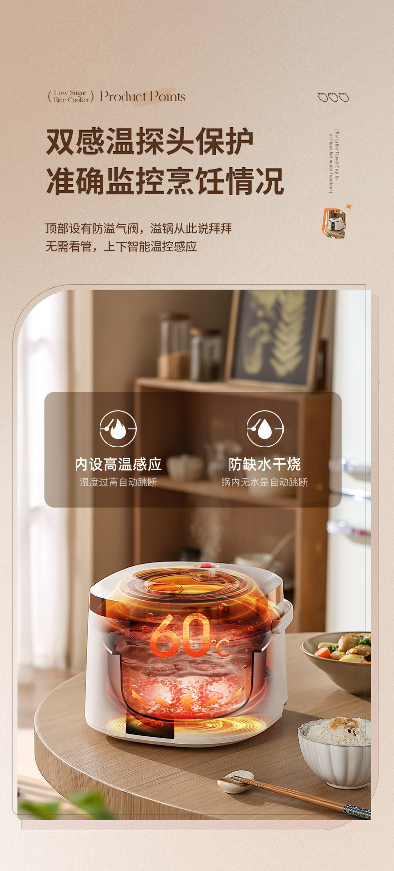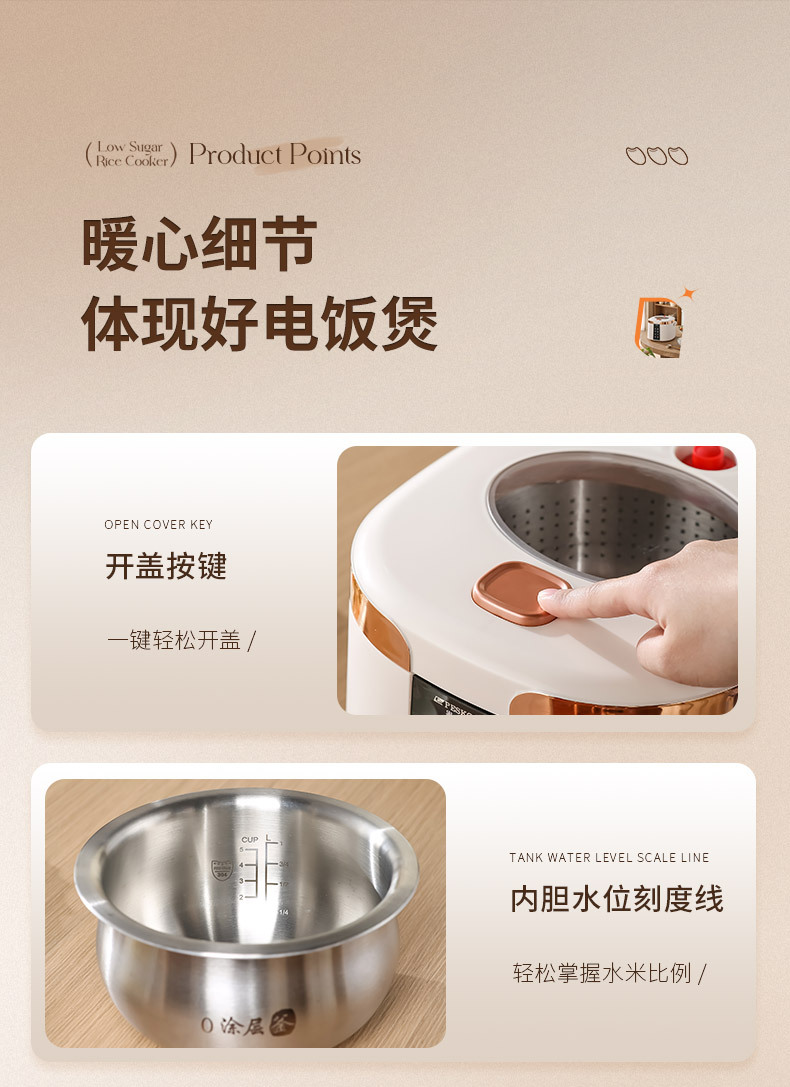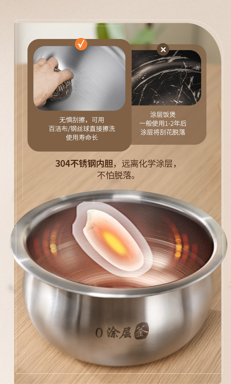 - 4L【升级款】304不锈钢釜胆+塑料蒸笼