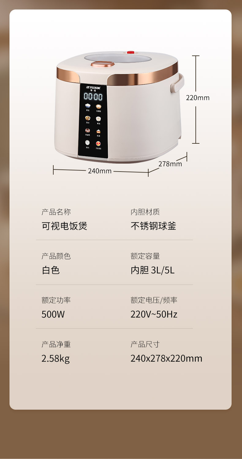 - 5L【升级款】304不锈钢釜胆+塑料蒸笼