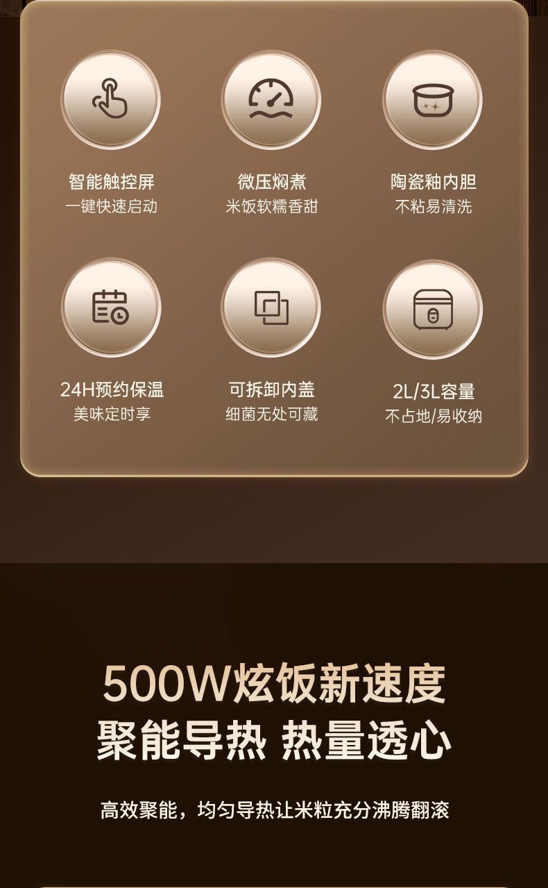 3L电饭煲家用智能预约蒸煮饭煲汤多功能陶瓷不粘电饭锅