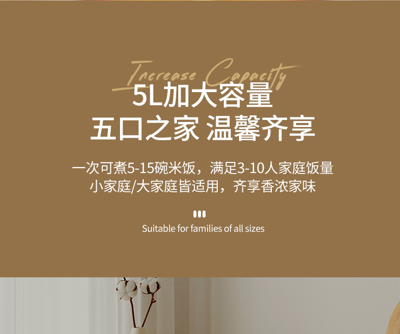 电饭煲家用5L智能预约煮饭煲汤大容量不粘锅电饭锅