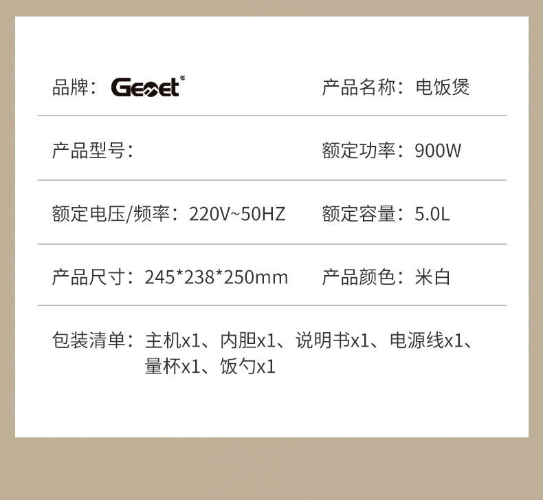 电饭煲5L米白色款