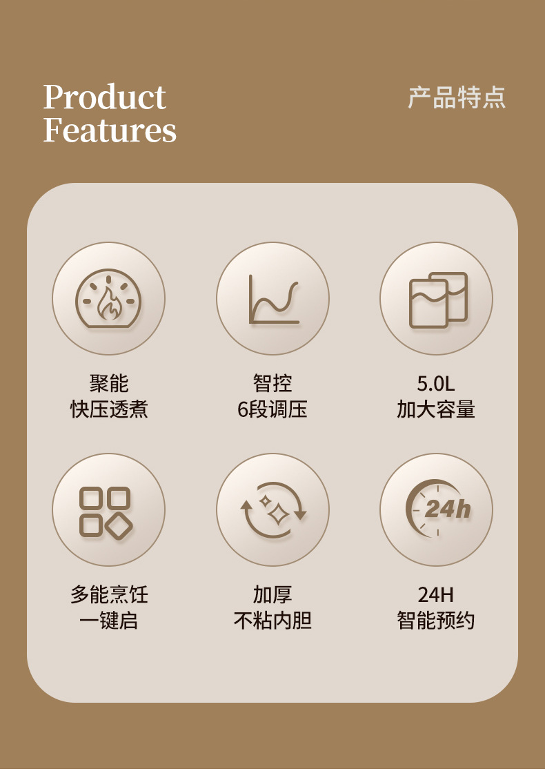 电饭煲5L大容量电饭锅家用智能预约不粘内胆电饭煲