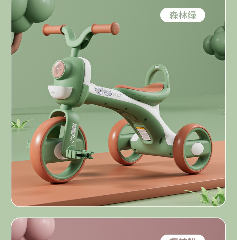 【森林绿】硅胶车把+音乐灯光+轻音轮.