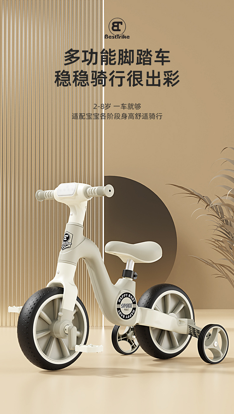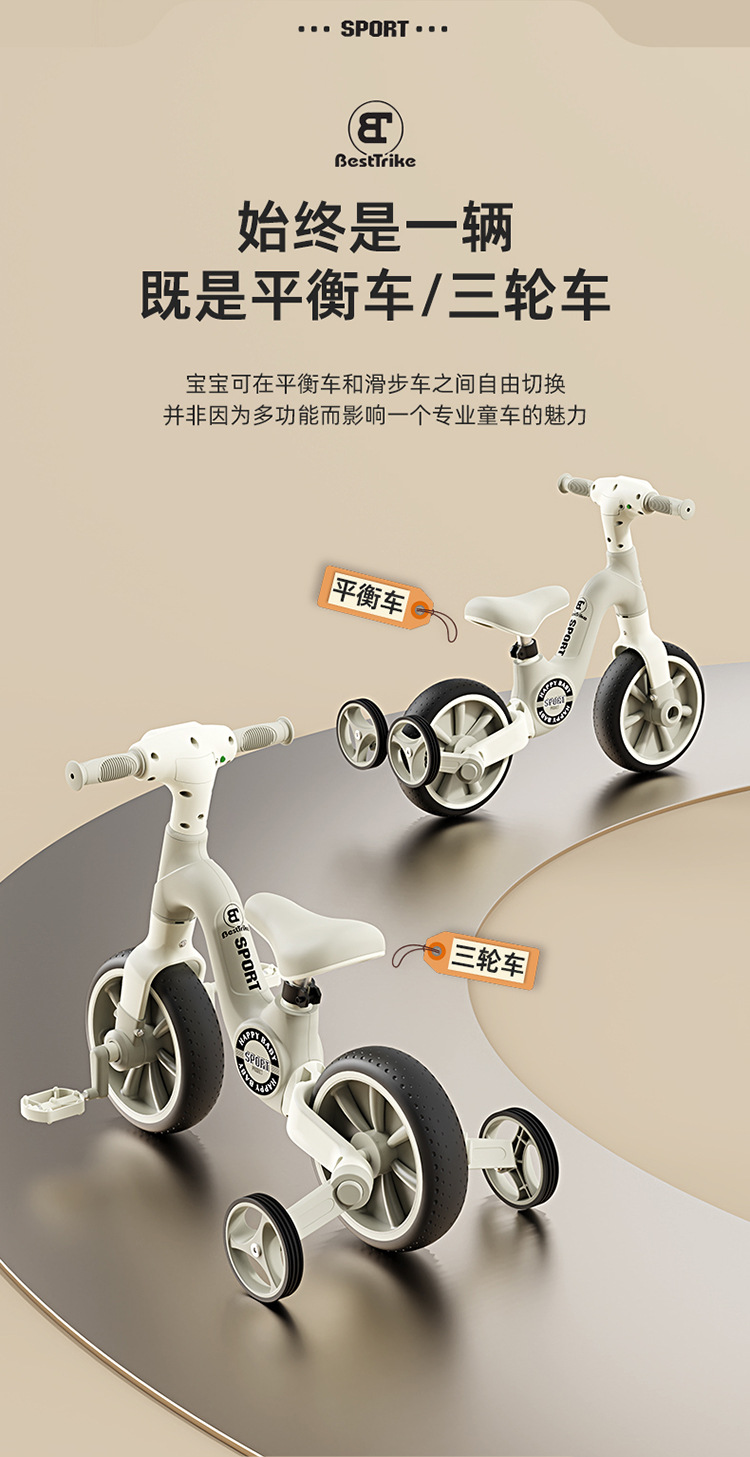 儿童平衡车脚踏三轮车1-2-3-6岁宝宝滑行学步车三合一滑步自行车