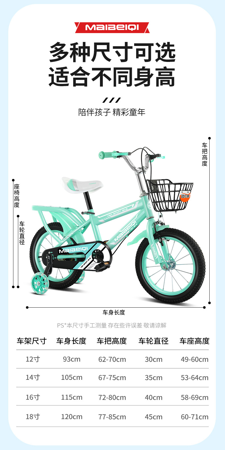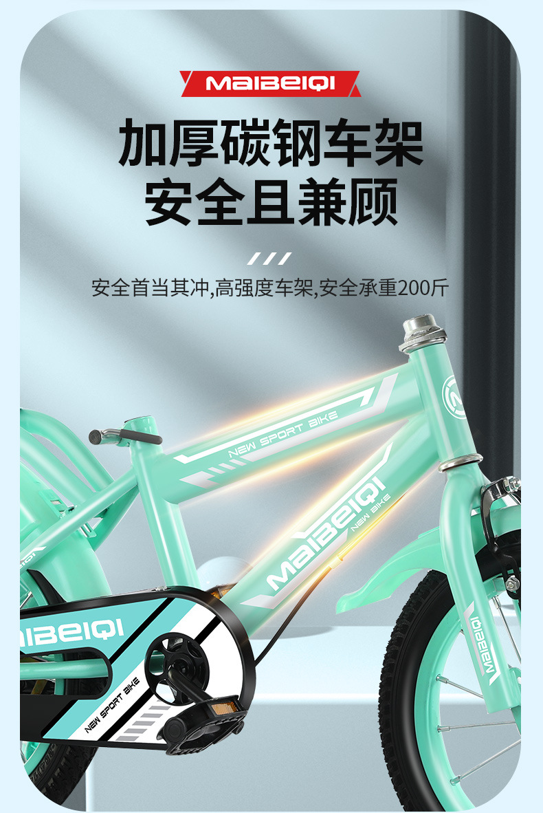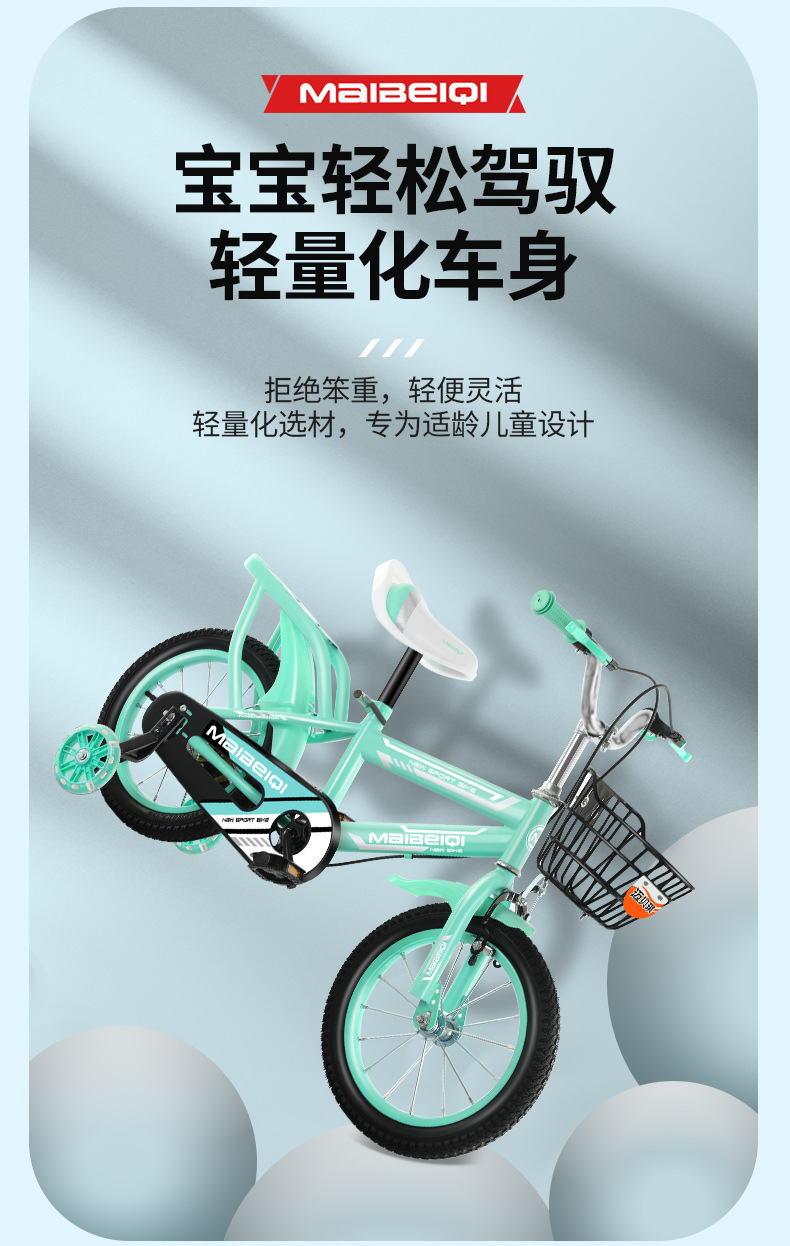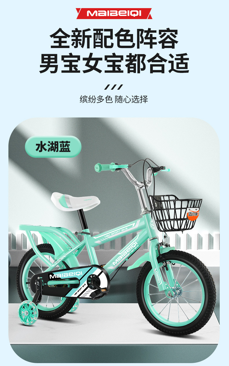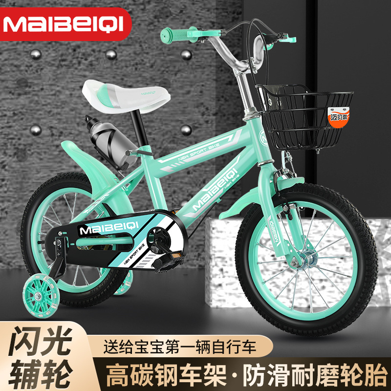 时尚儿童自行车儿童初学脚踏车带闪光辅助轮3-6岁男女孩骑行单车
