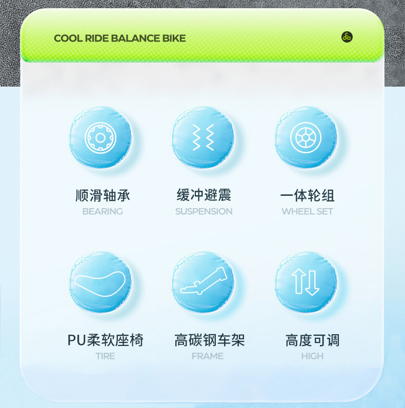 新款儿童平衡车3岁4岁两轮无脚踏加厚底座平稳宝宝入门滑行自行车