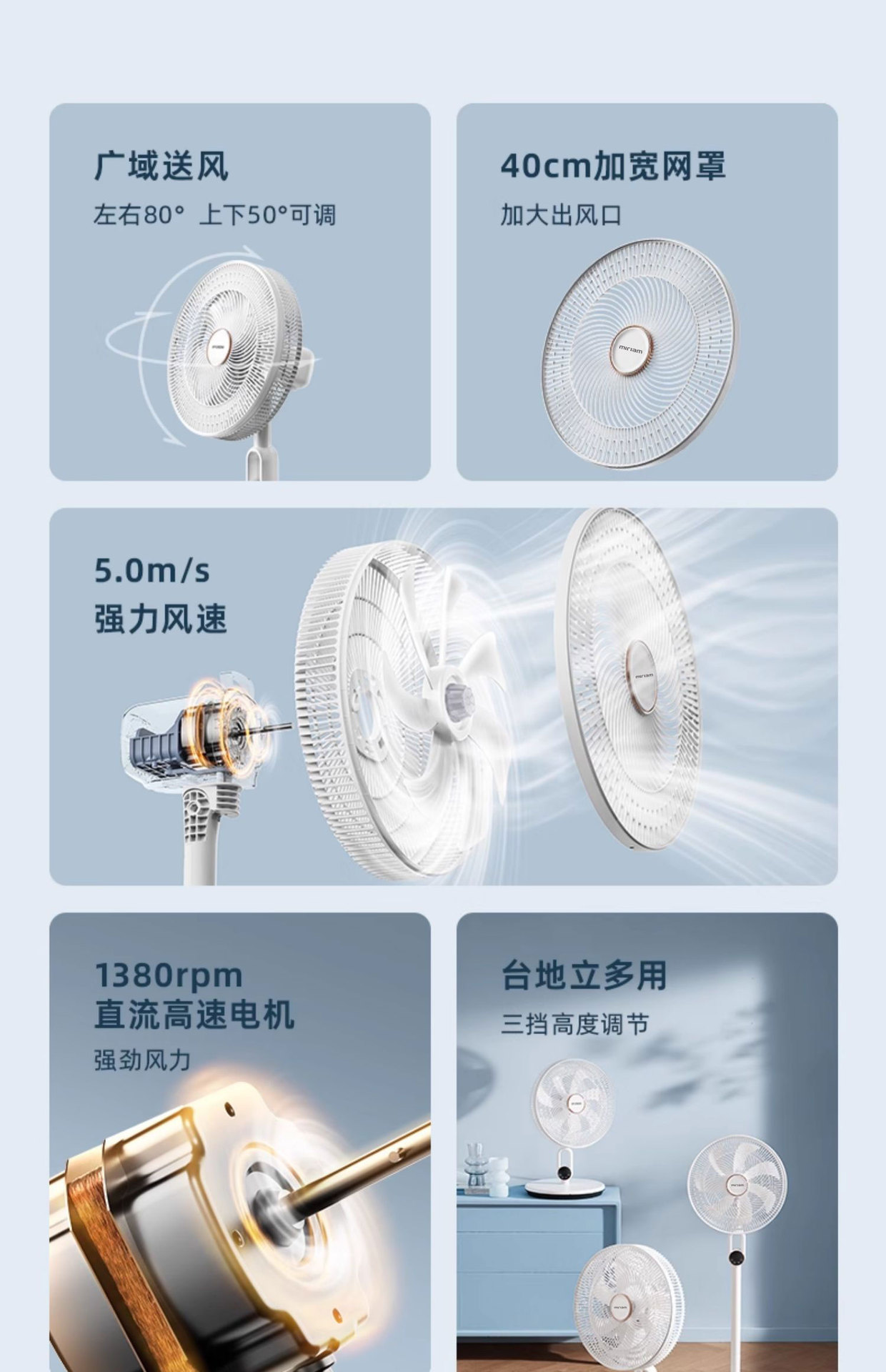 电风扇家用16寸落地扇立式轻音大风力风扇摇头定时遥控省电扇