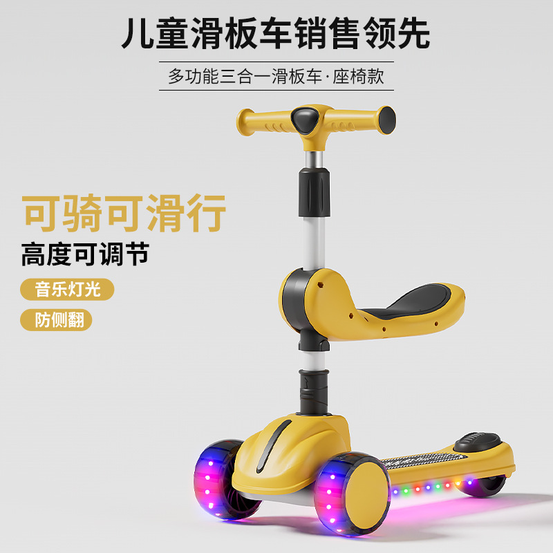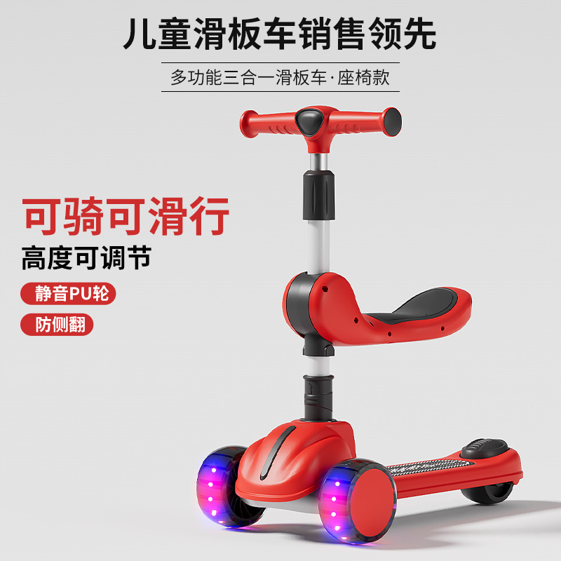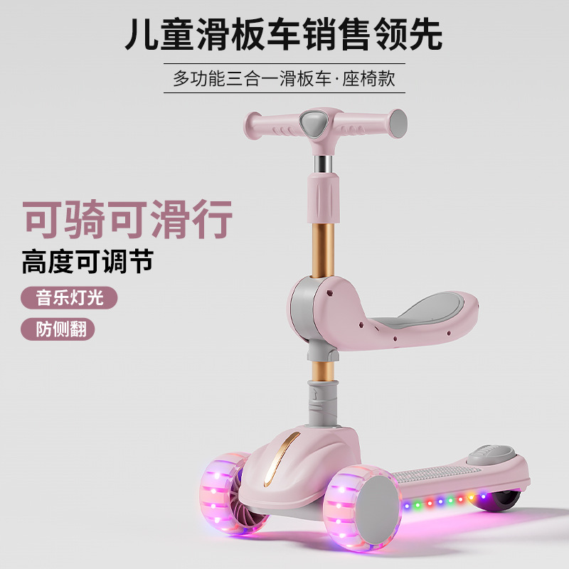 儿童滑板车三合一1-3-6岁男女童滑滑车宝宝可坐可骑滑溜溜车