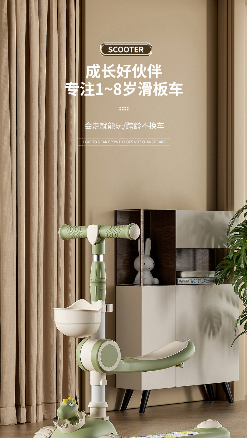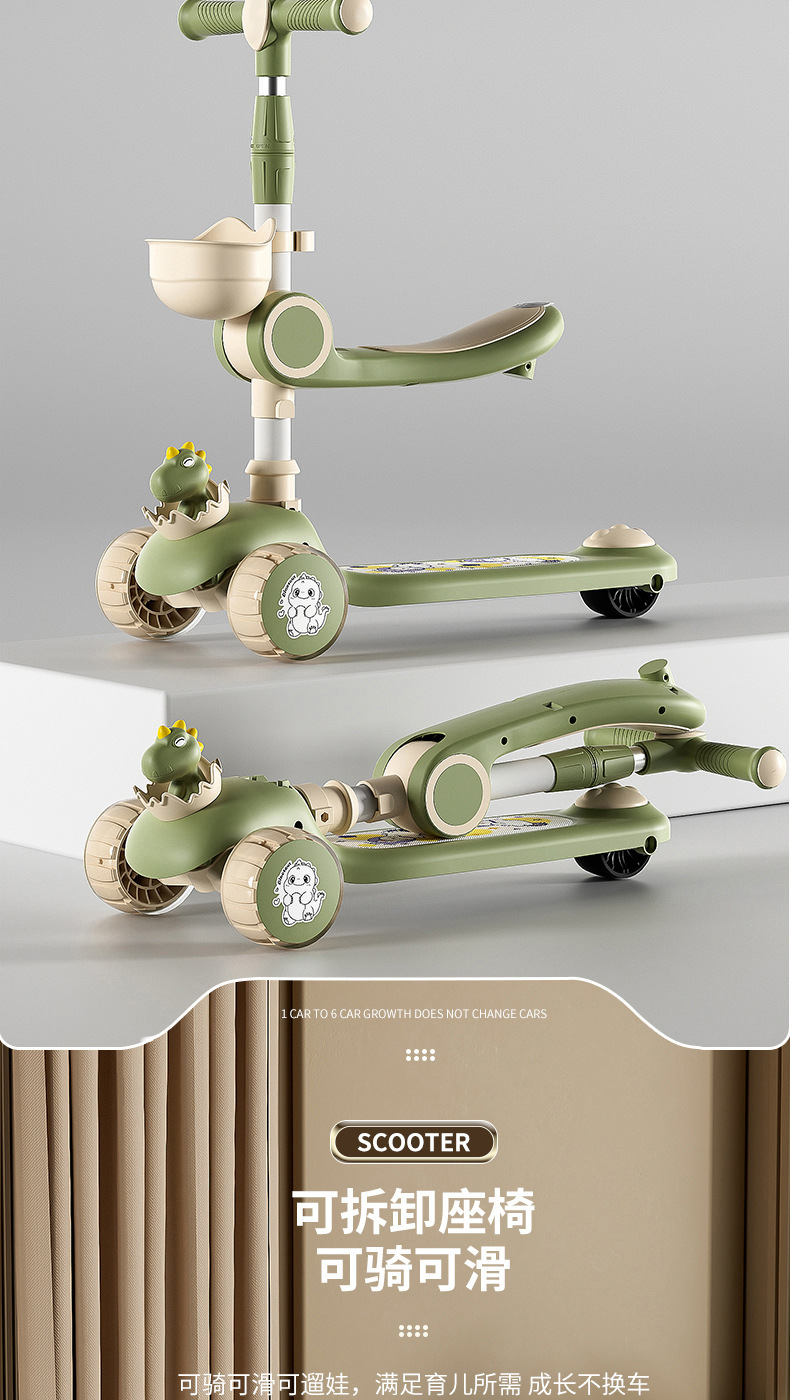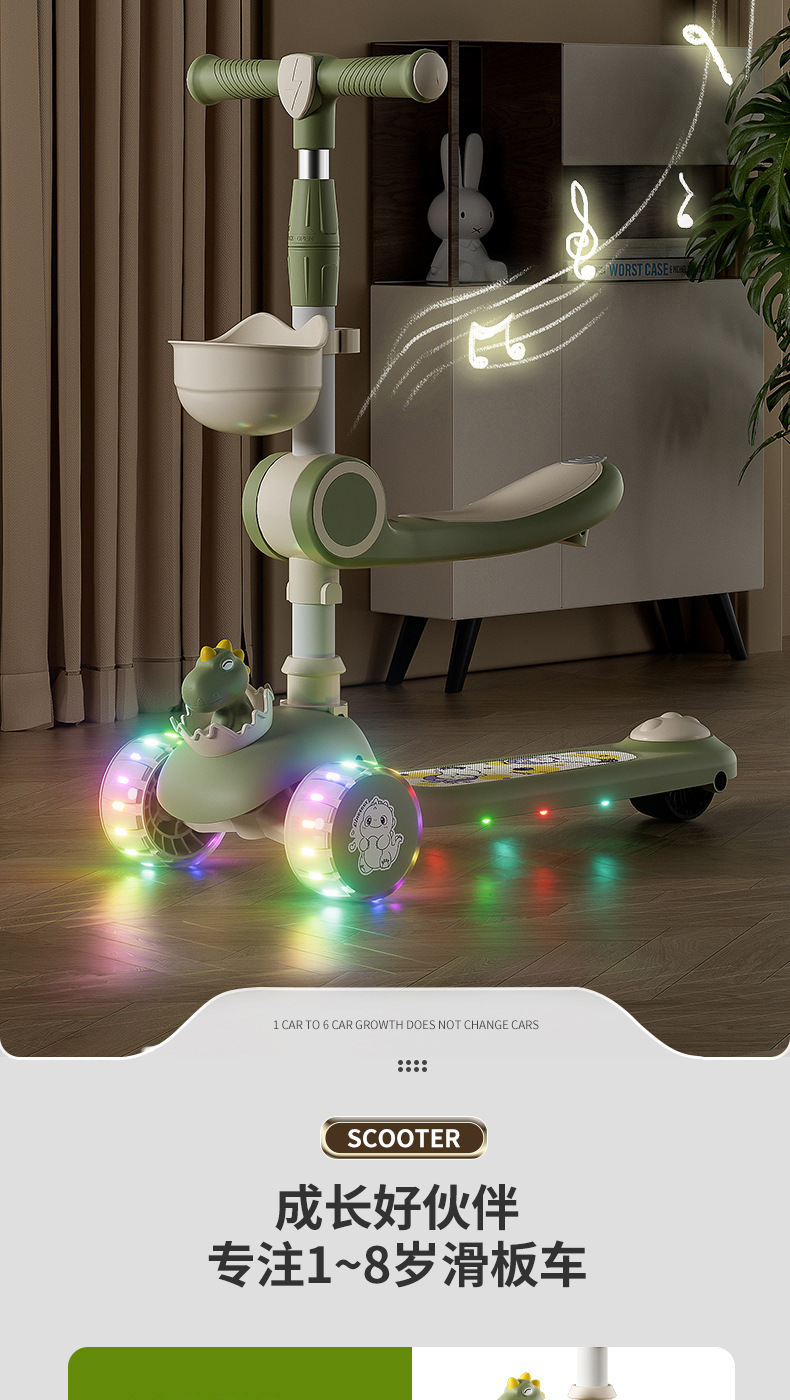 儿童滑板车2-10岁轮子带灯宝宝溜娃车5-12岁儿童平衡车玩具童车