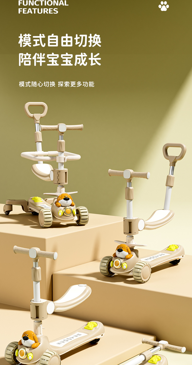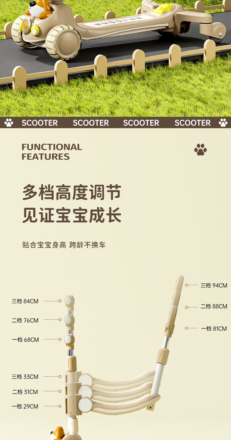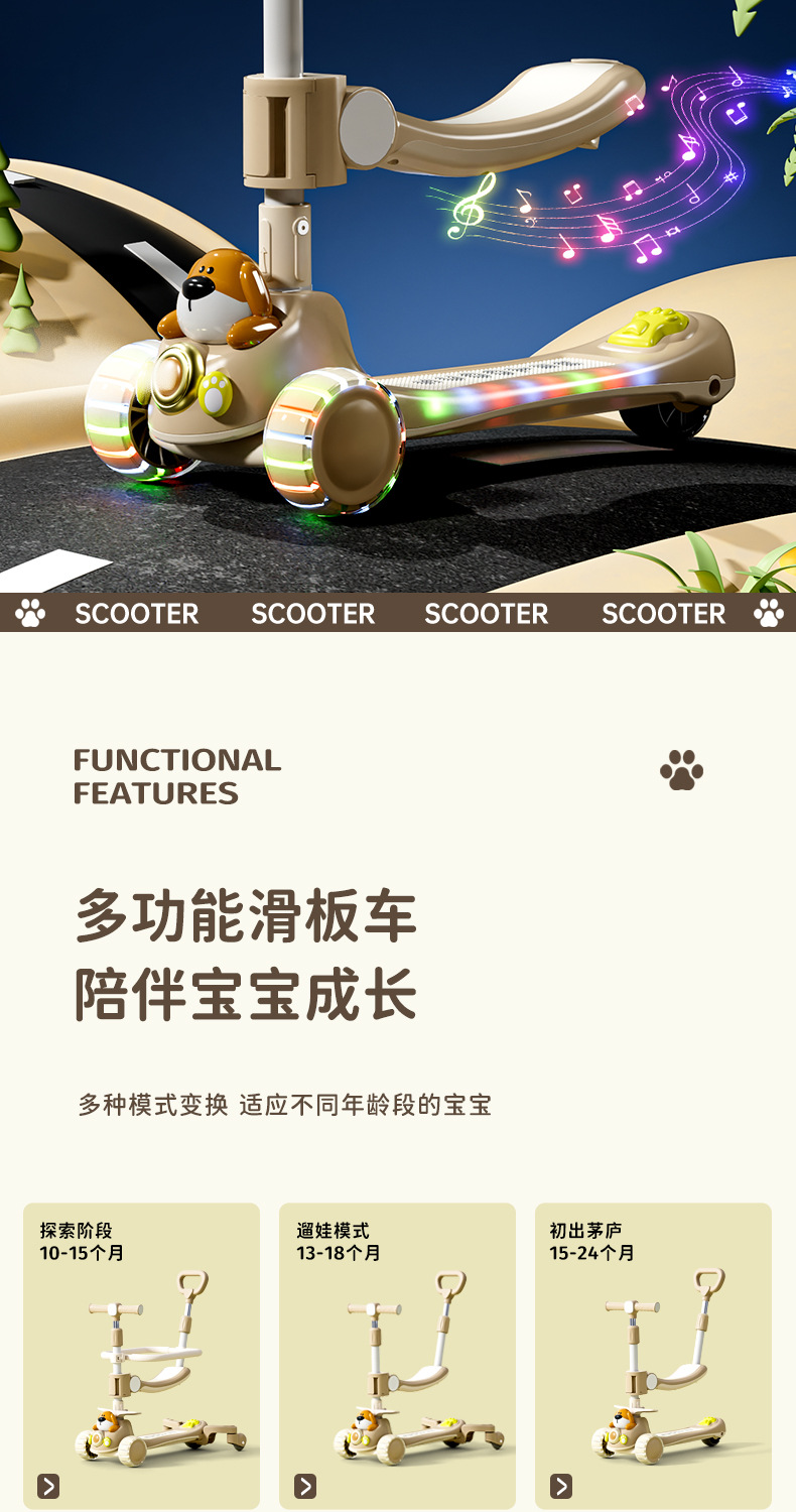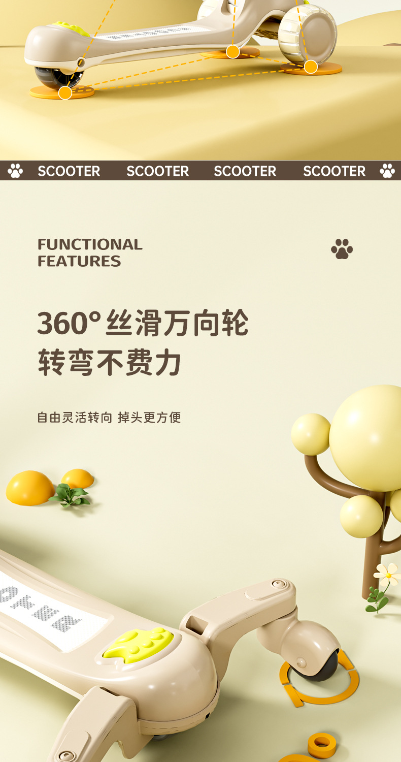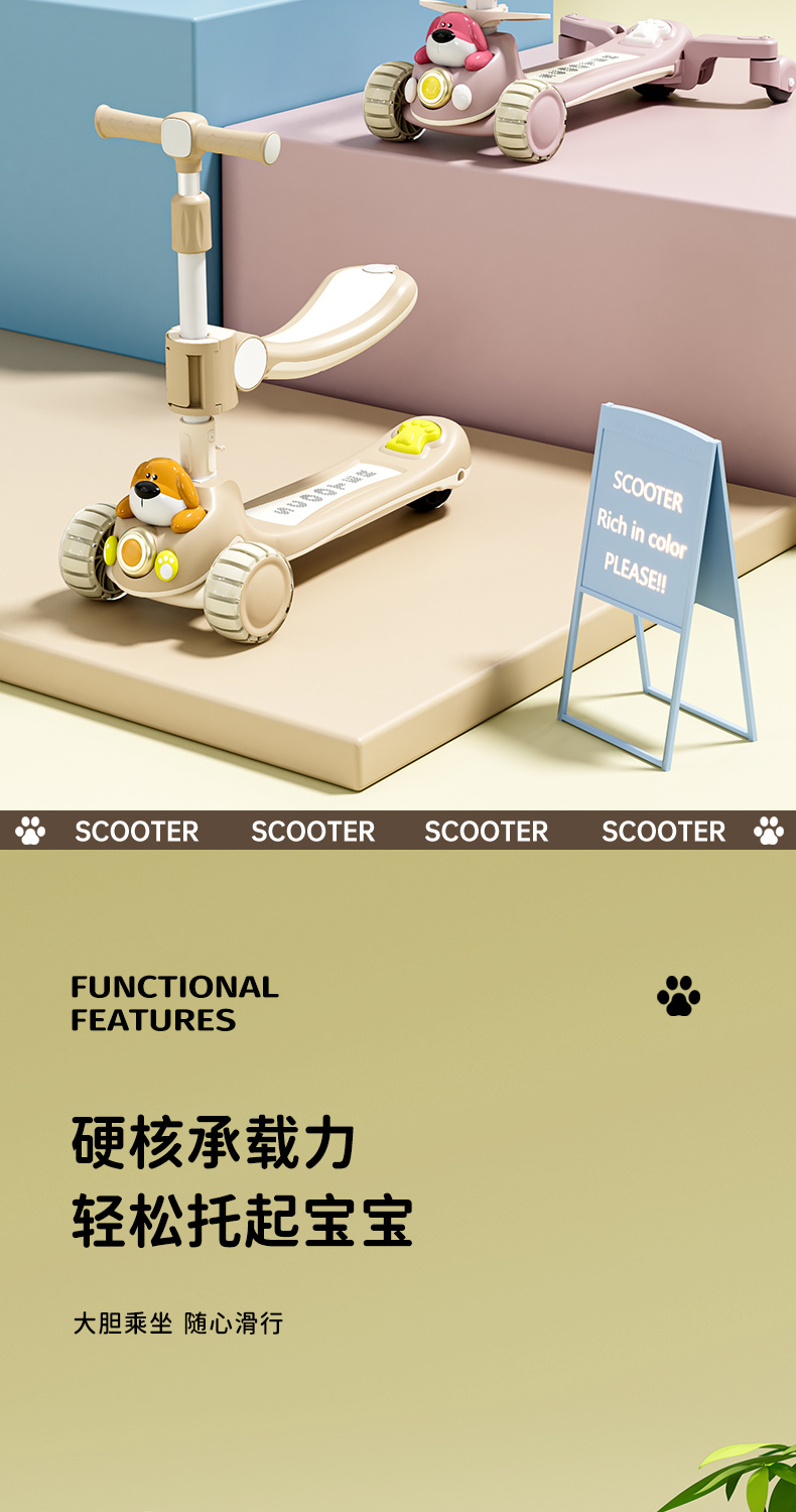 儿童滑板车卡通闪光轮滑板车2-3-6-12岁宝宝可升降滑滑车