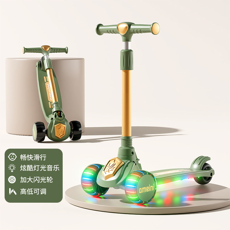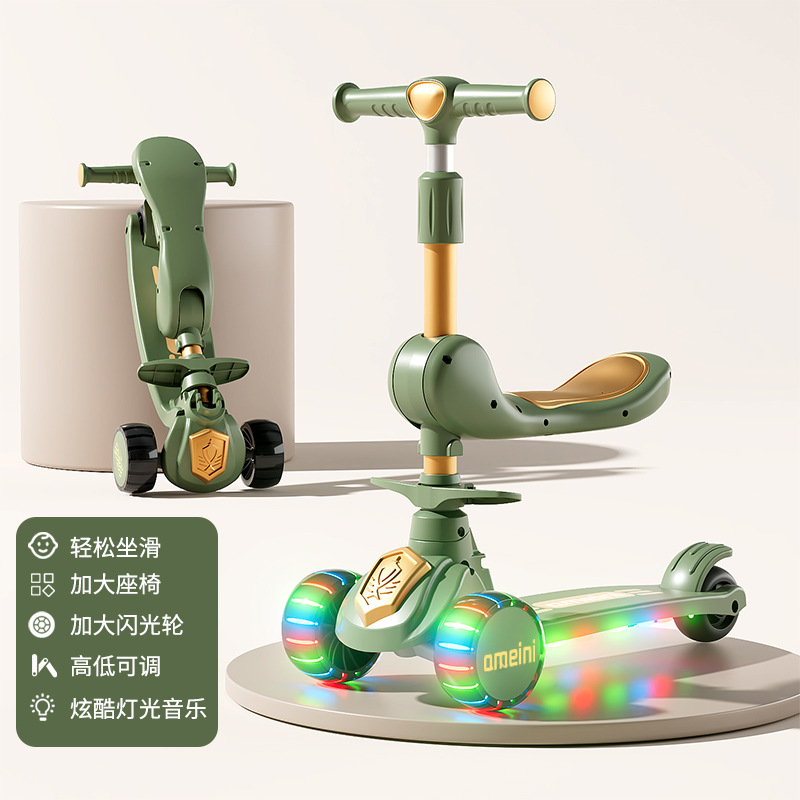 多功能儿童滑板车可坐可滑行一键折叠踏板车带音乐灯光玩具滑行车