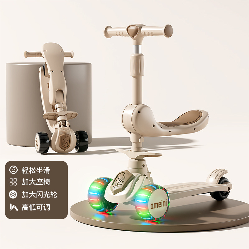 儿童滑板车可折叠三合一带座1-3-6岁小孩脚踏车防侧翻滑行车