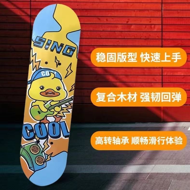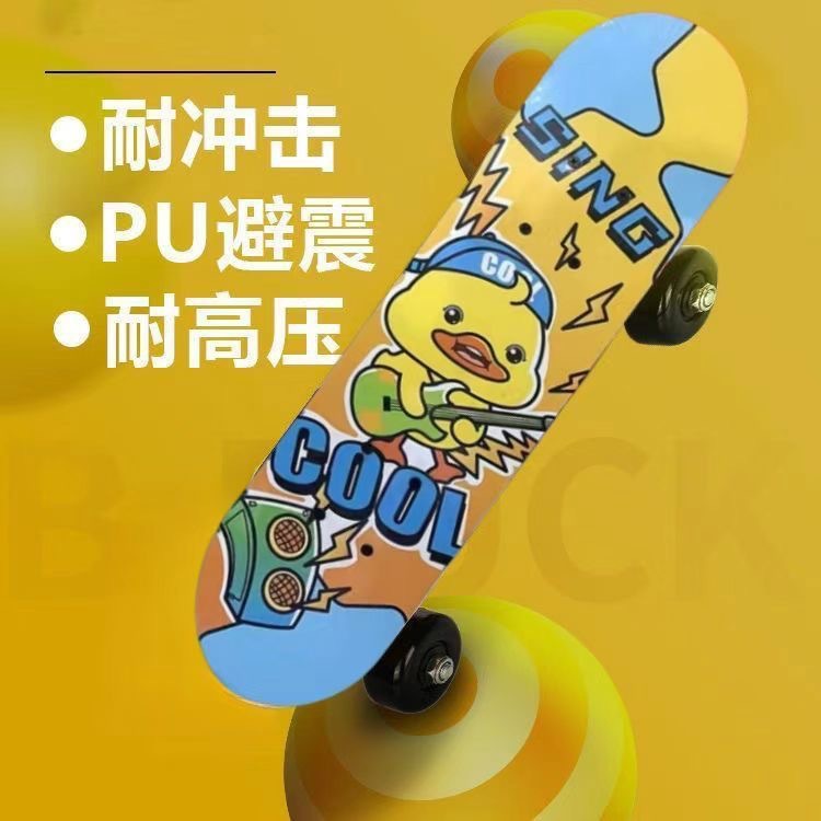 初学者运动卡通儿童四轮滑板车户外便携双翘板玩具小黄鸭学步