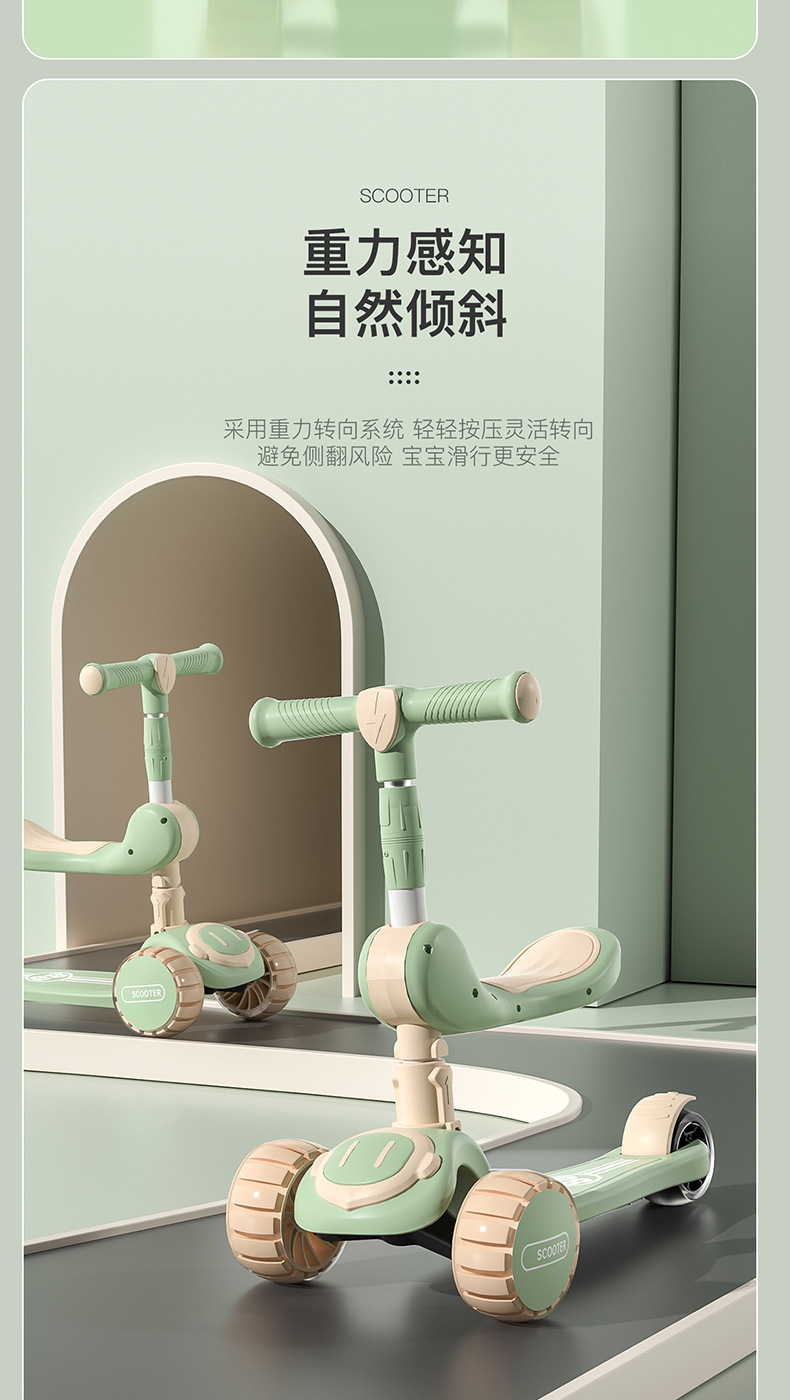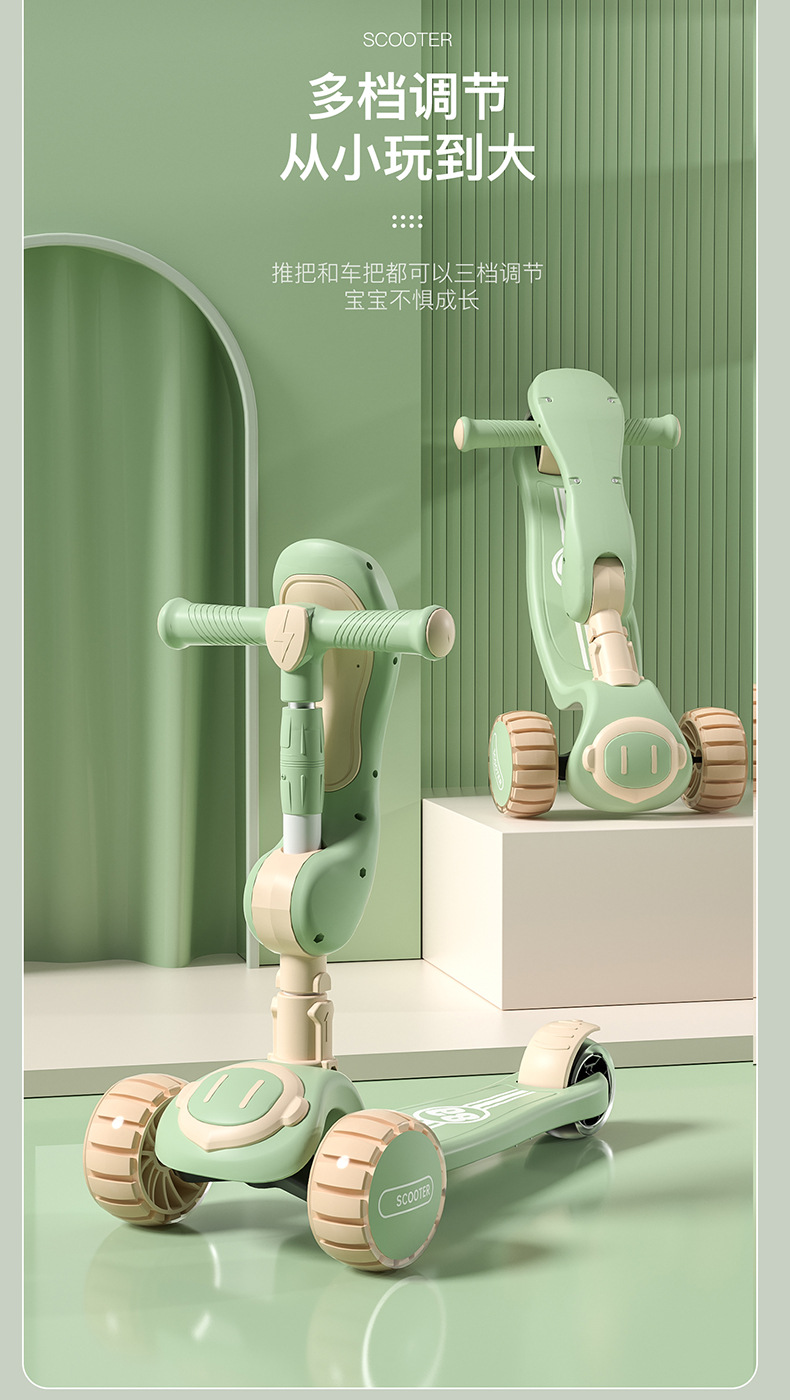 礼品折叠儿童滑板车2-8岁三轮闪光脚踏车宝宝滑行车玩具童车