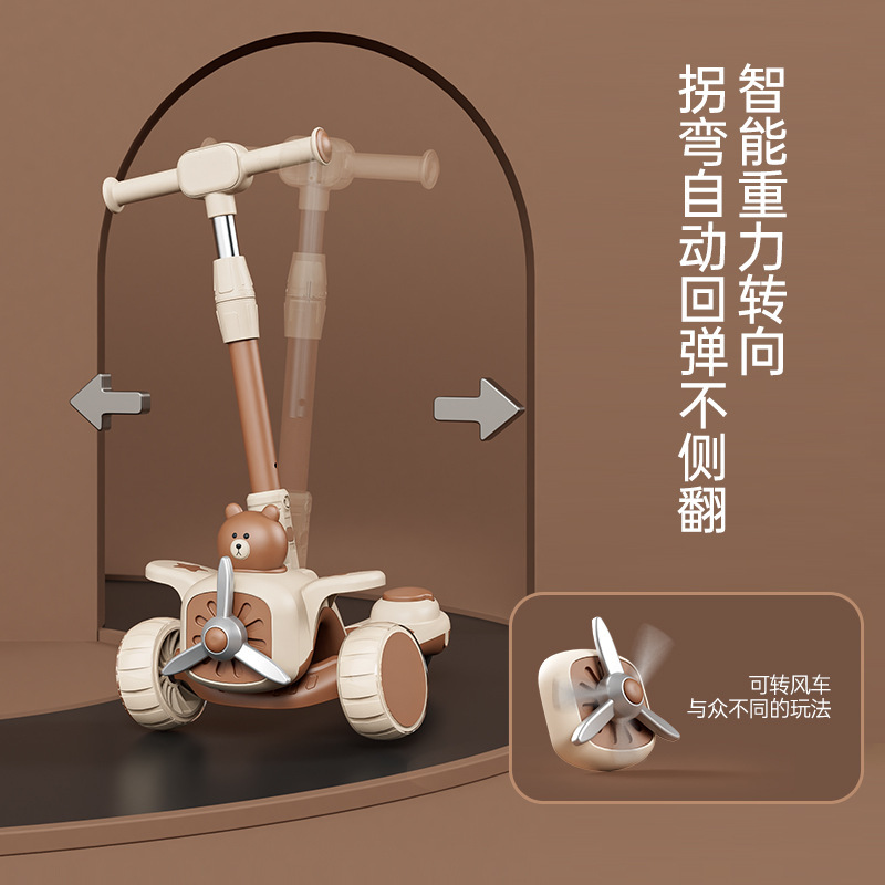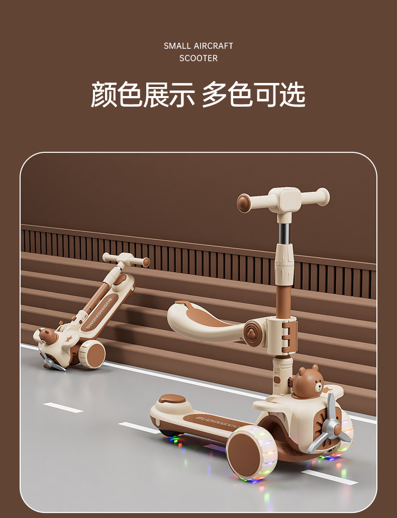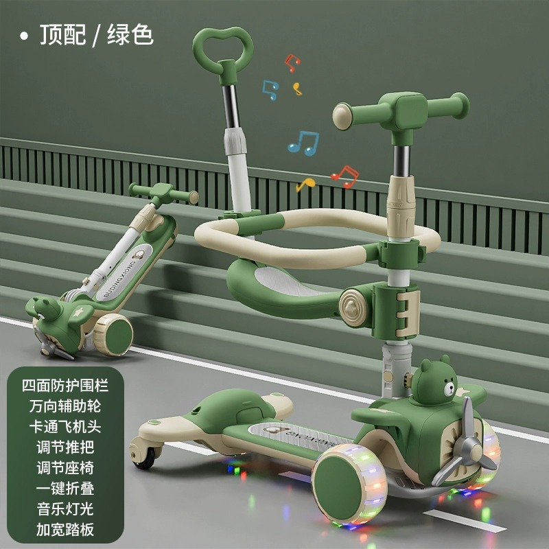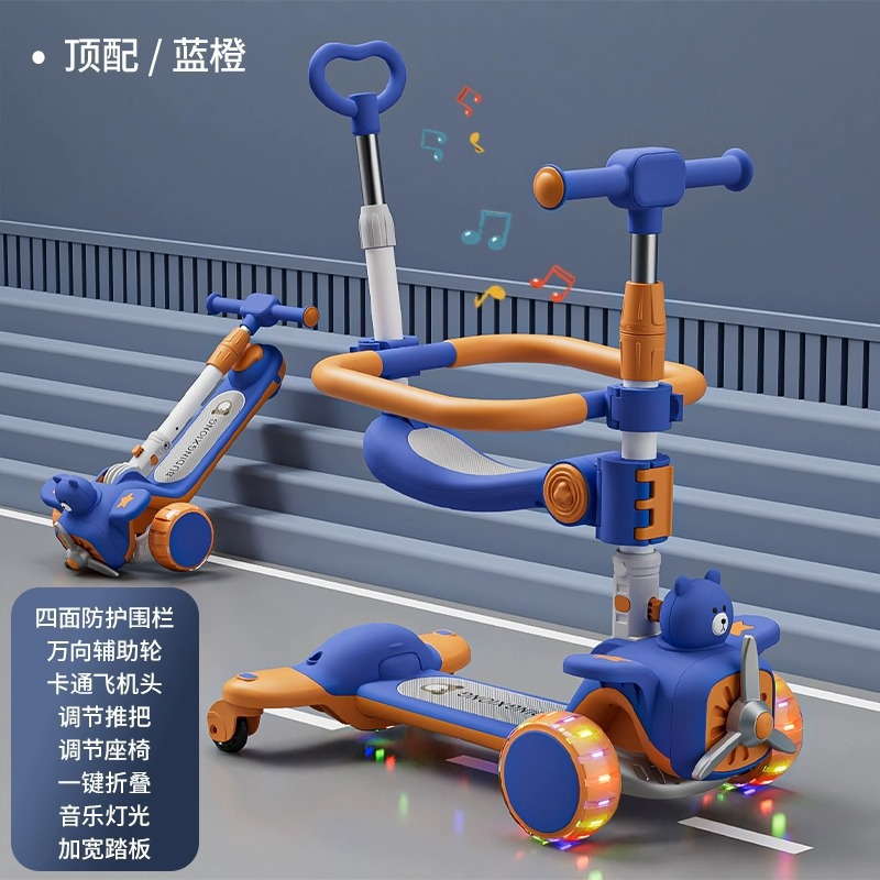 儿童滑板车1-12岁可坐可滑音乐闪光轮手推车三合一轻便可一键折叠