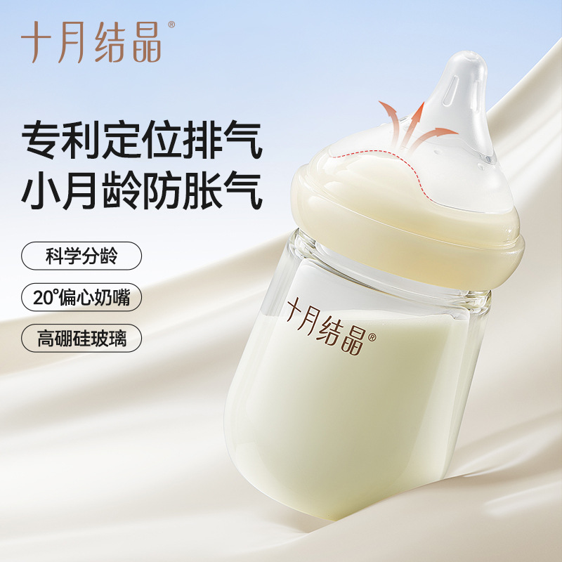 十月结晶玻璃奶瓶0到6个月婴儿新生儿防胀气宝宝专用奶瓶奶嘴防呛