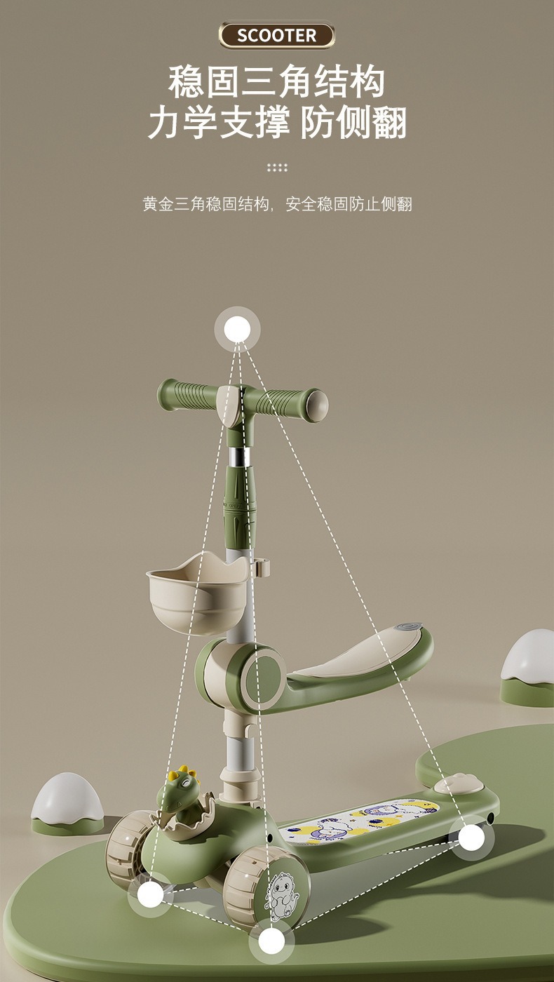 滑板车儿童1—3-6-12-岁男女童公主款三合一可坐可骑滑宝宝溜溜车