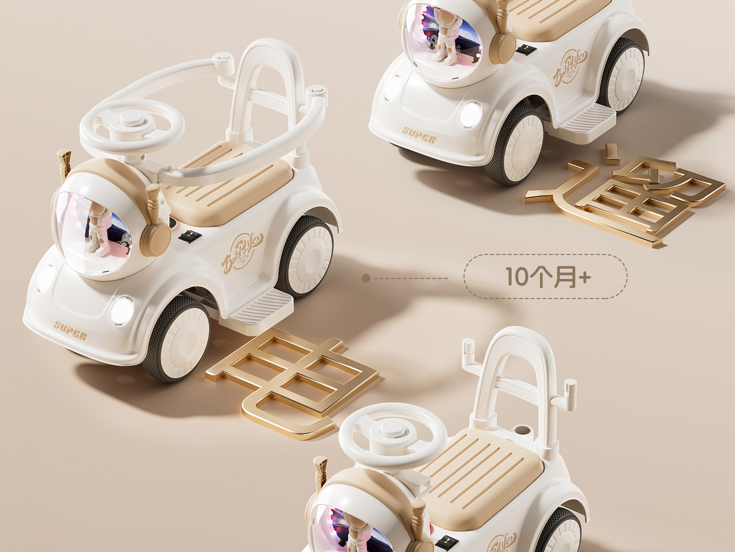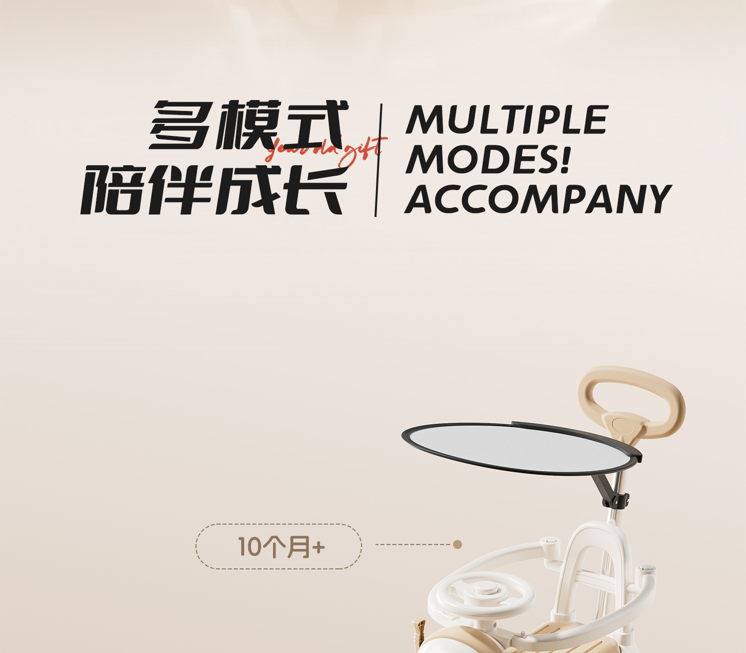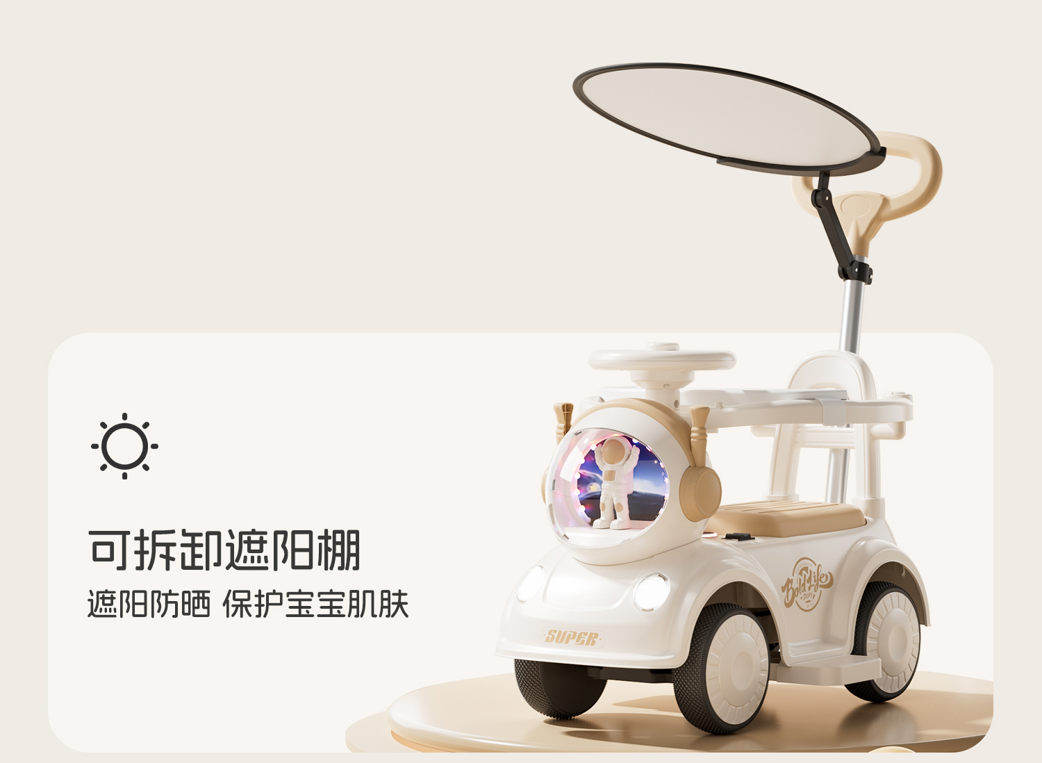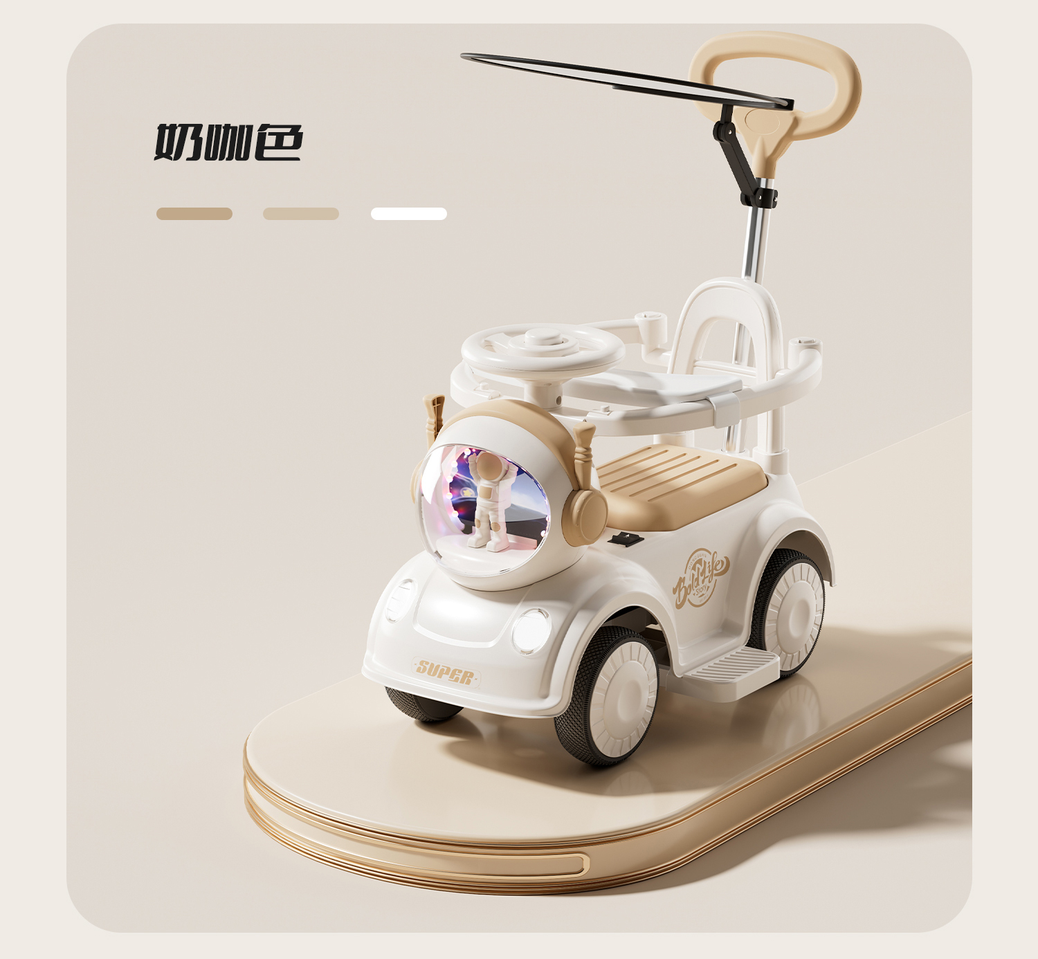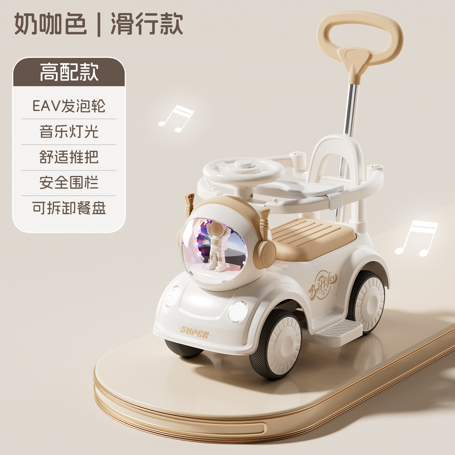 - 奶咖色【升级滑行款】音乐灯光+推把围栏+餐盘+EVA静音轮+非电动电力驱动