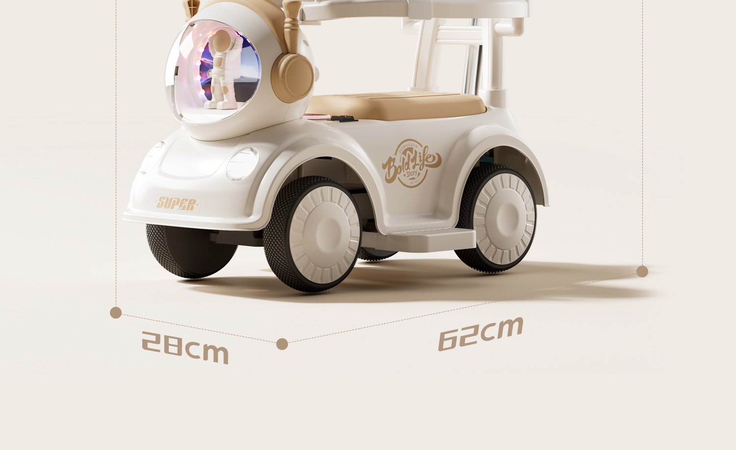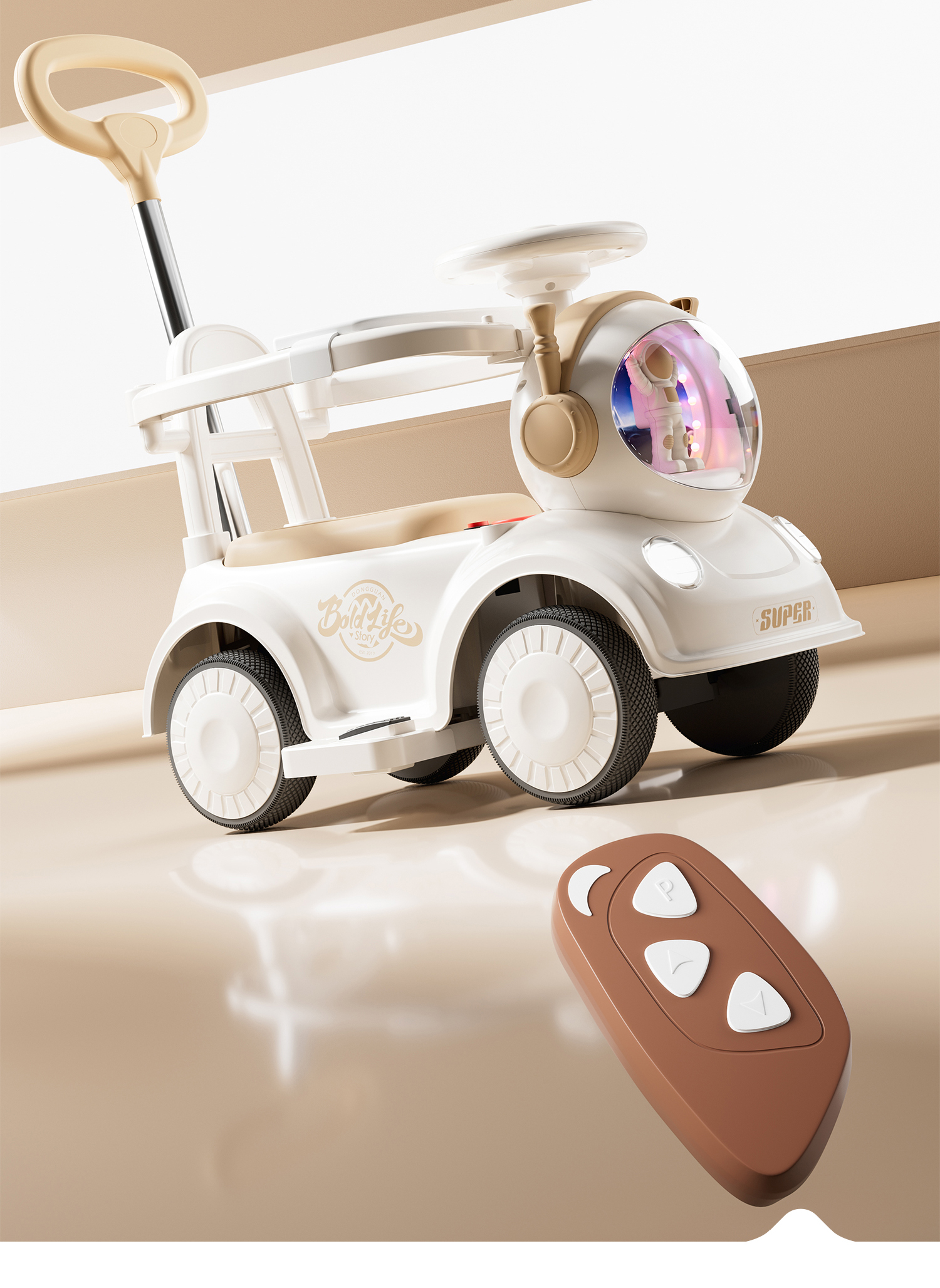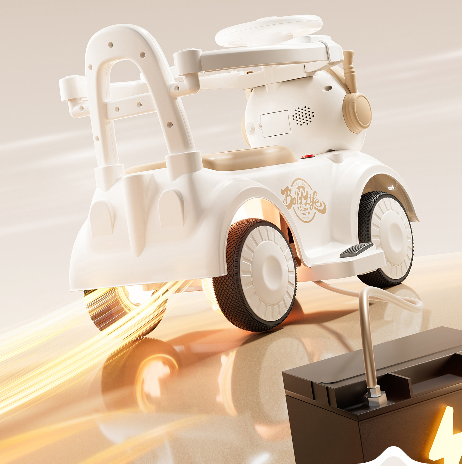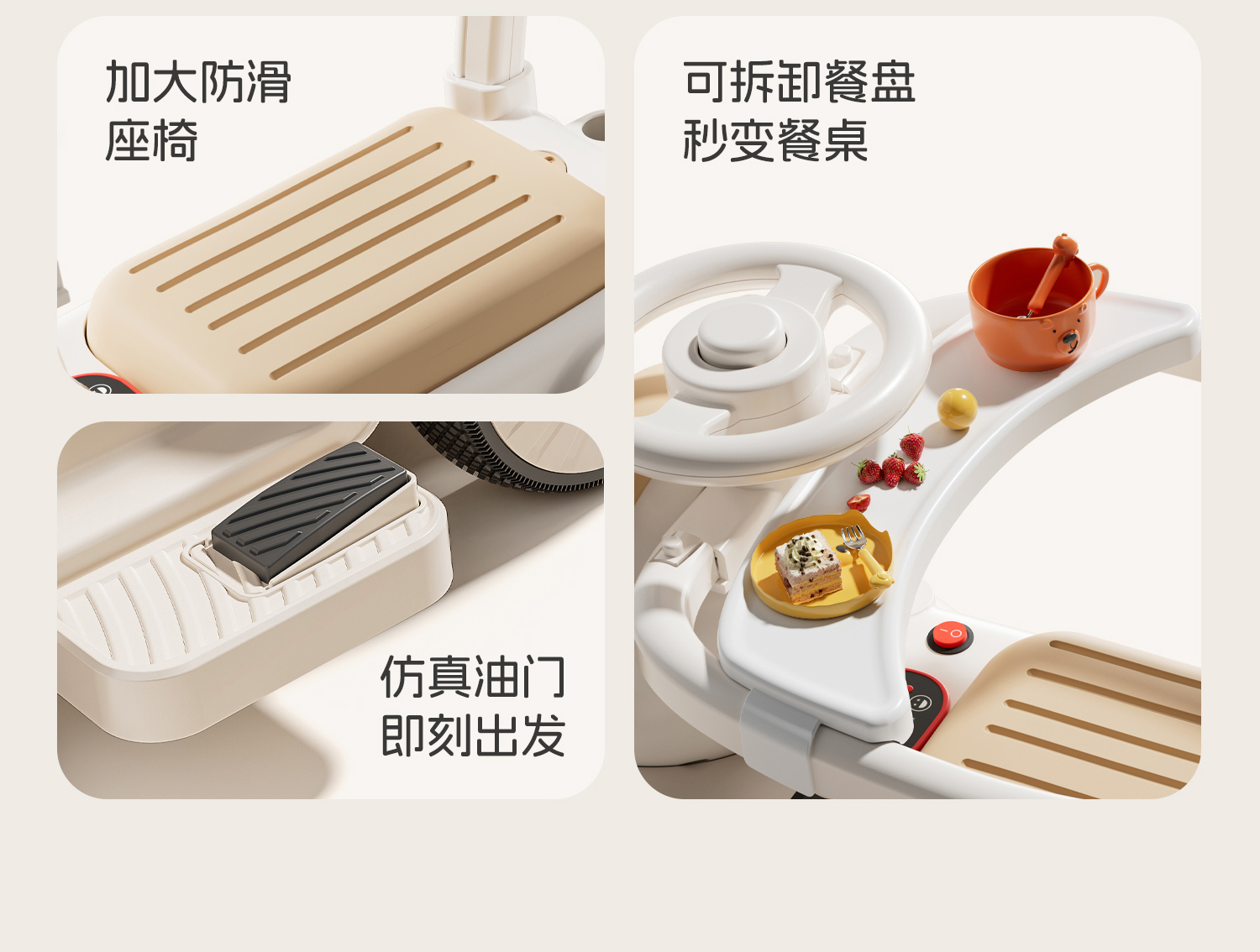 - 奶咖色【电动款】蓝牙+音乐灯光+推把围栏+餐盘+EVA静音轮电力驱动