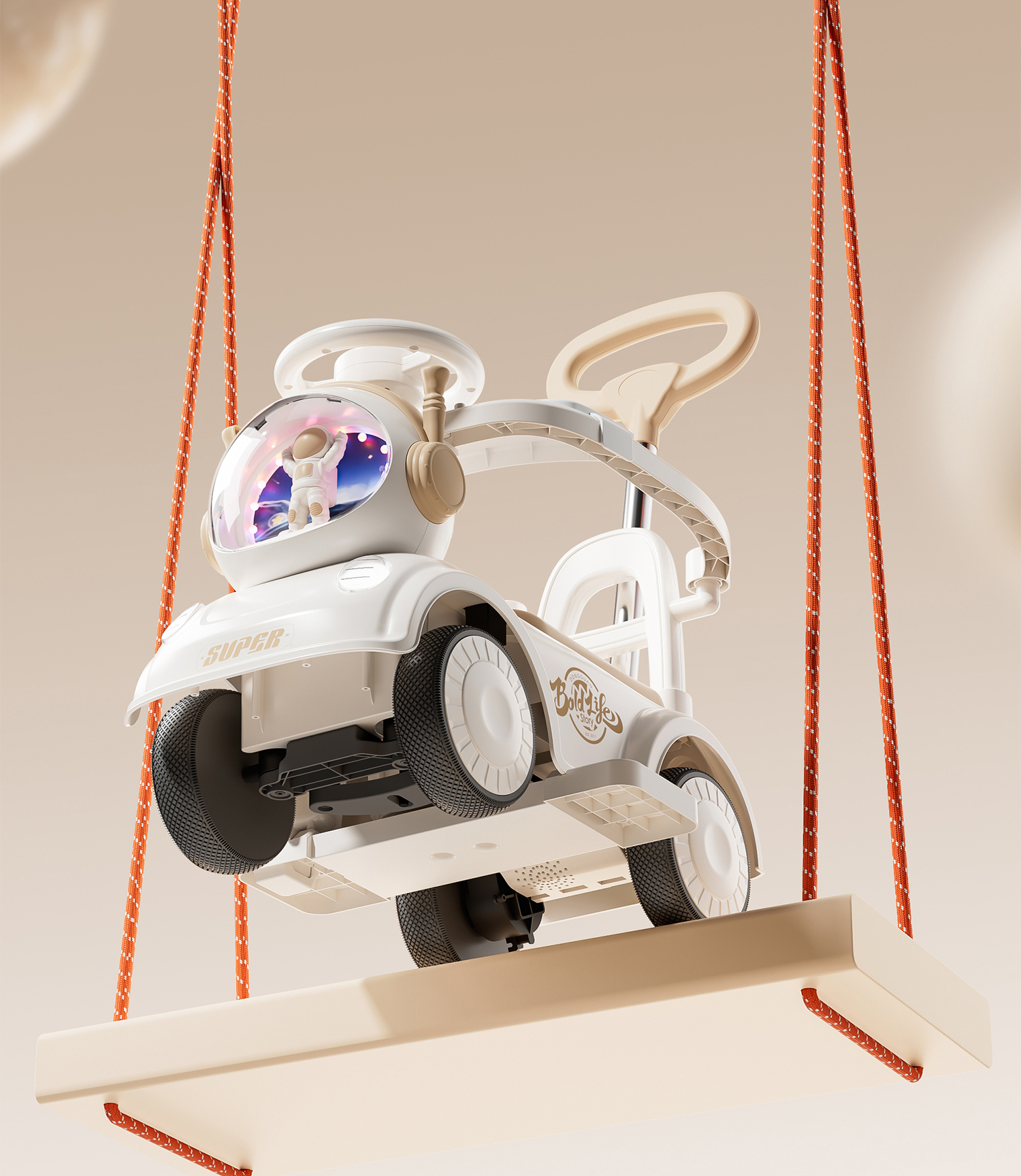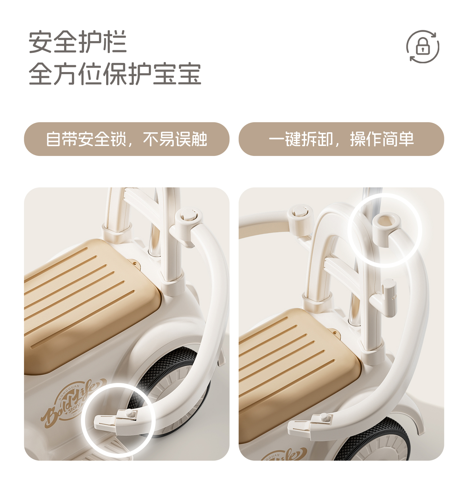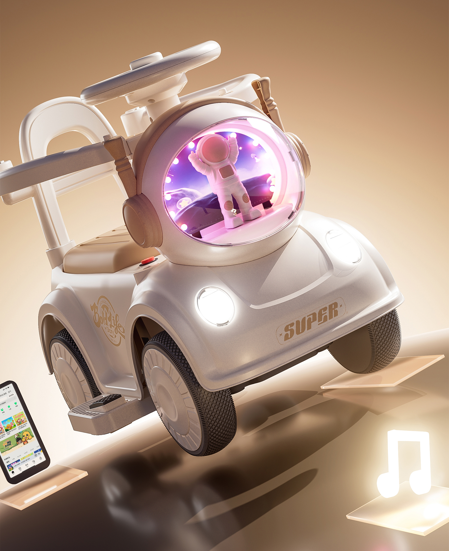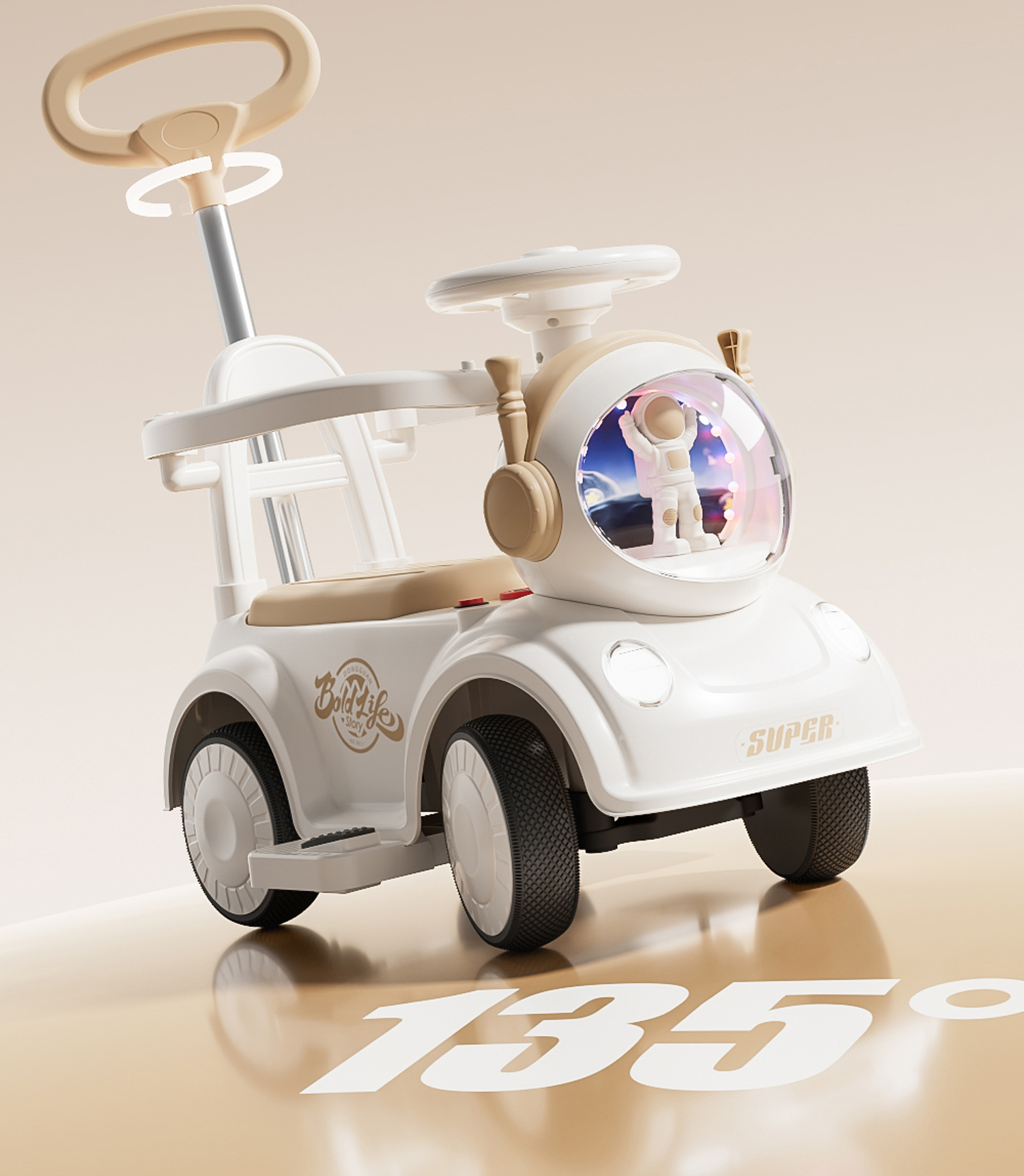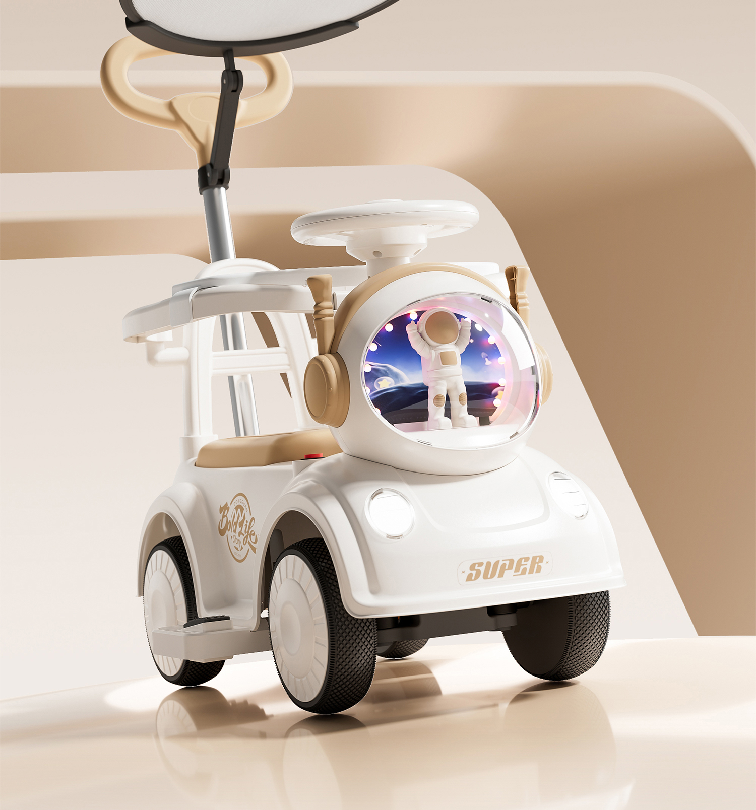 - 奶咖色【电动款】蓝牙+音乐灯光+推把围栏+餐盘+EVA静音轮电力驱动