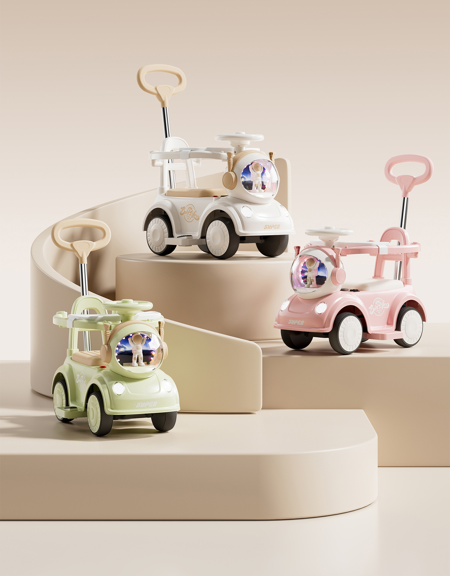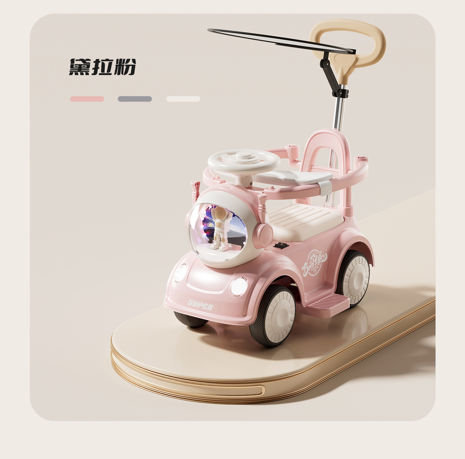 - 黛拉粉【经典滑行款】音乐灯光+推把围栏+餐盘+普通轮+非电动电力驱动