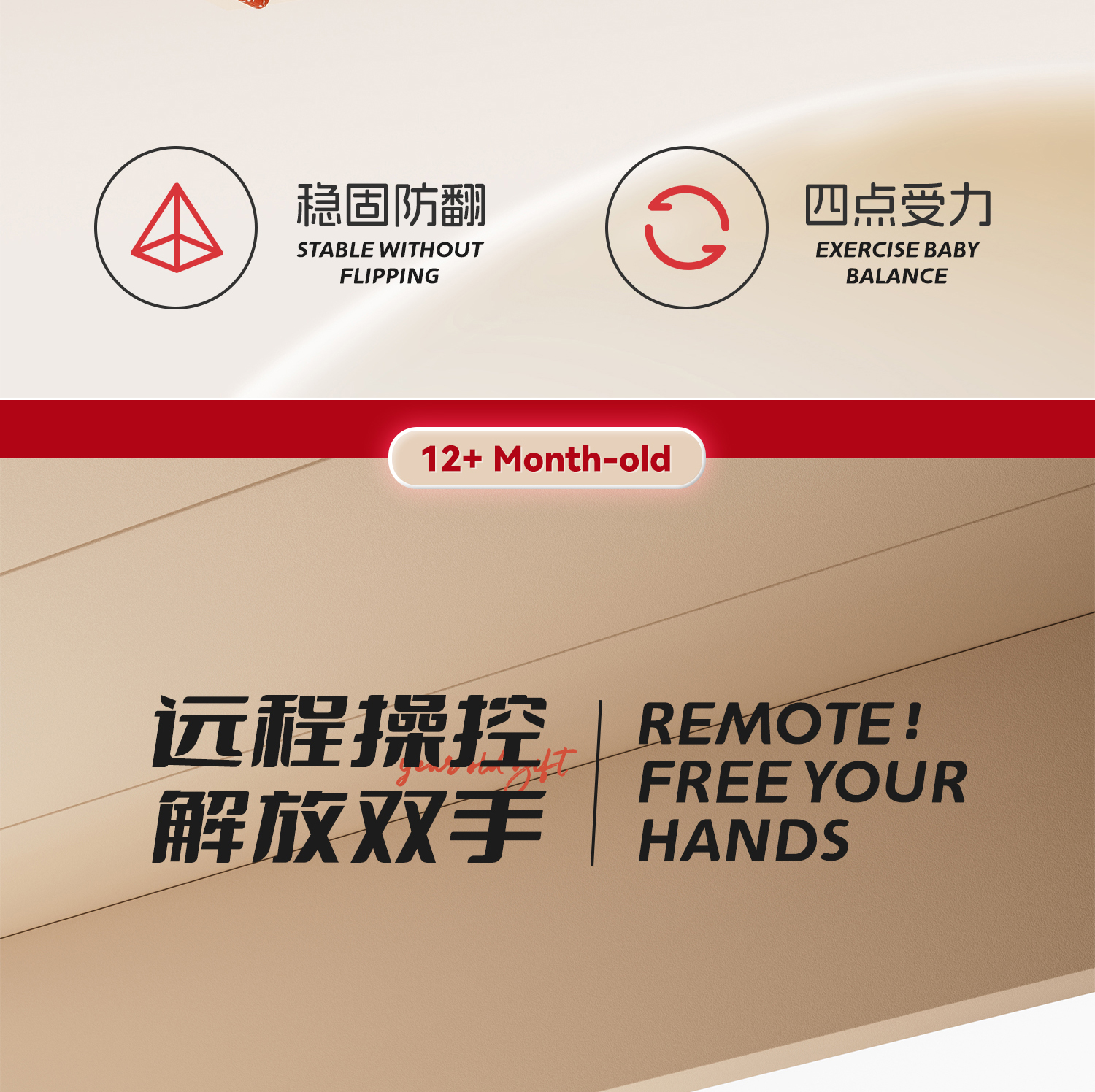 - 奶咖色【遥控电动款】蓝牙+音乐灯光+推把围栏+餐盘+EVA静音轮电力驱动