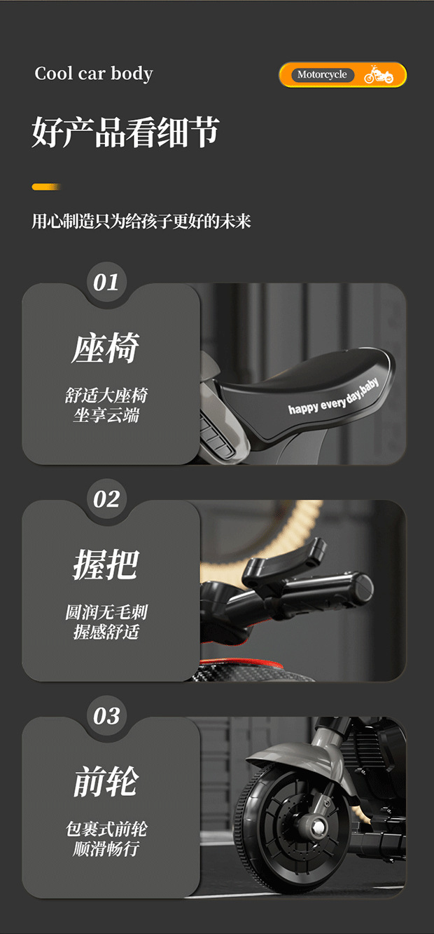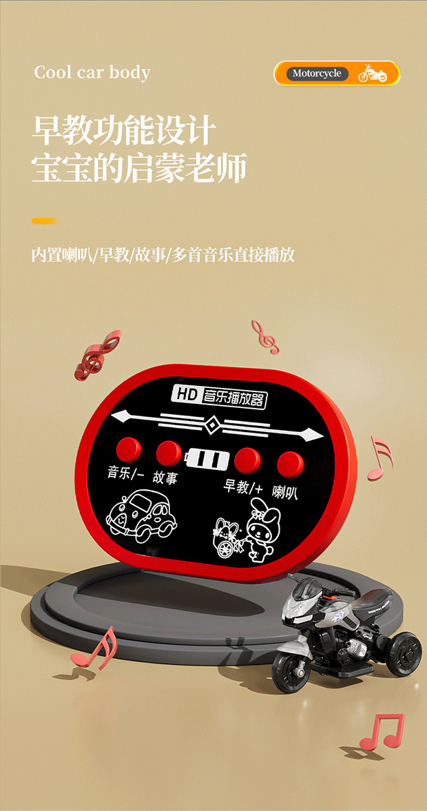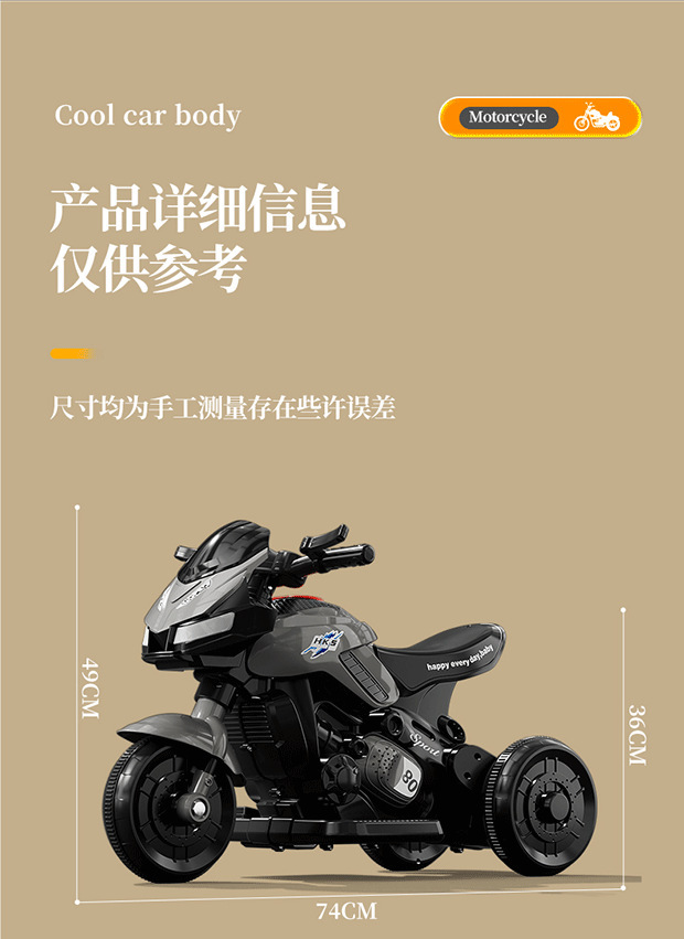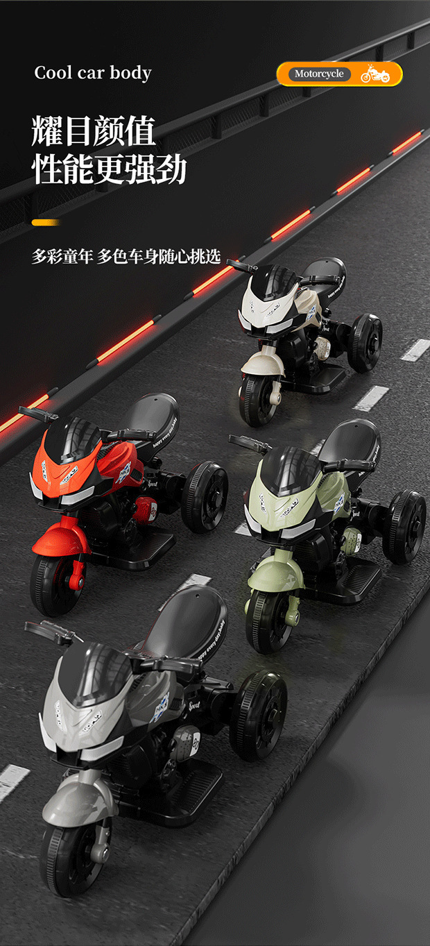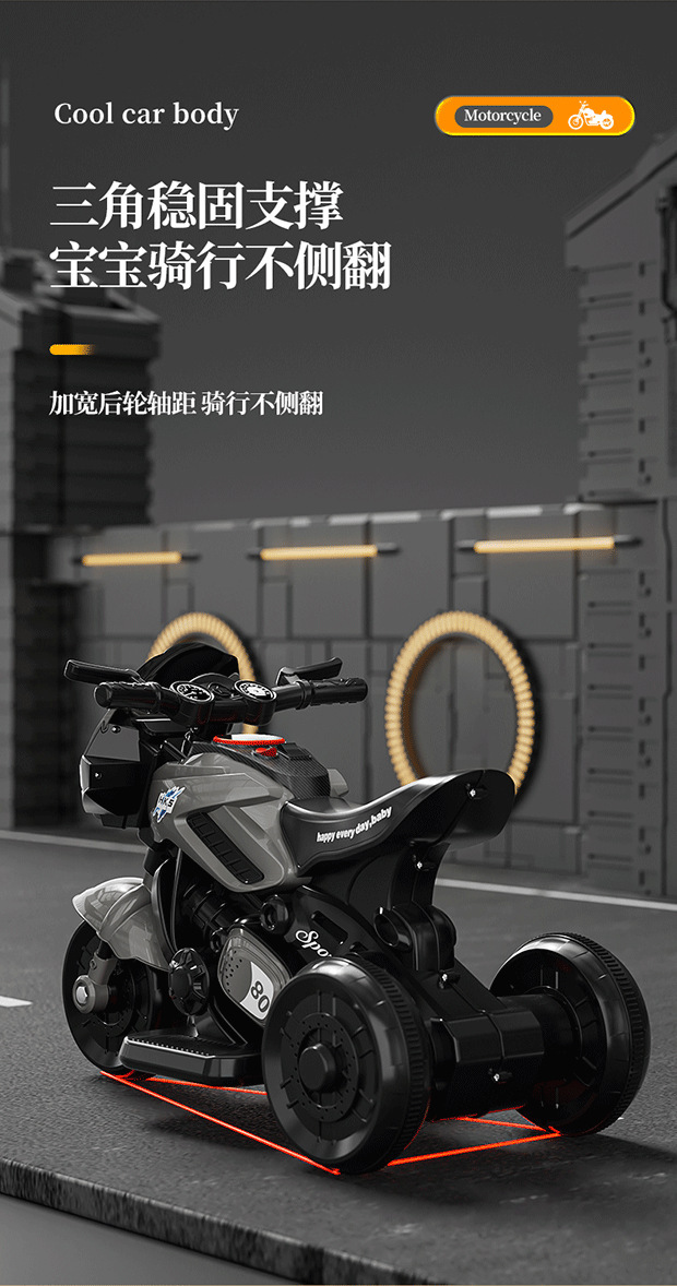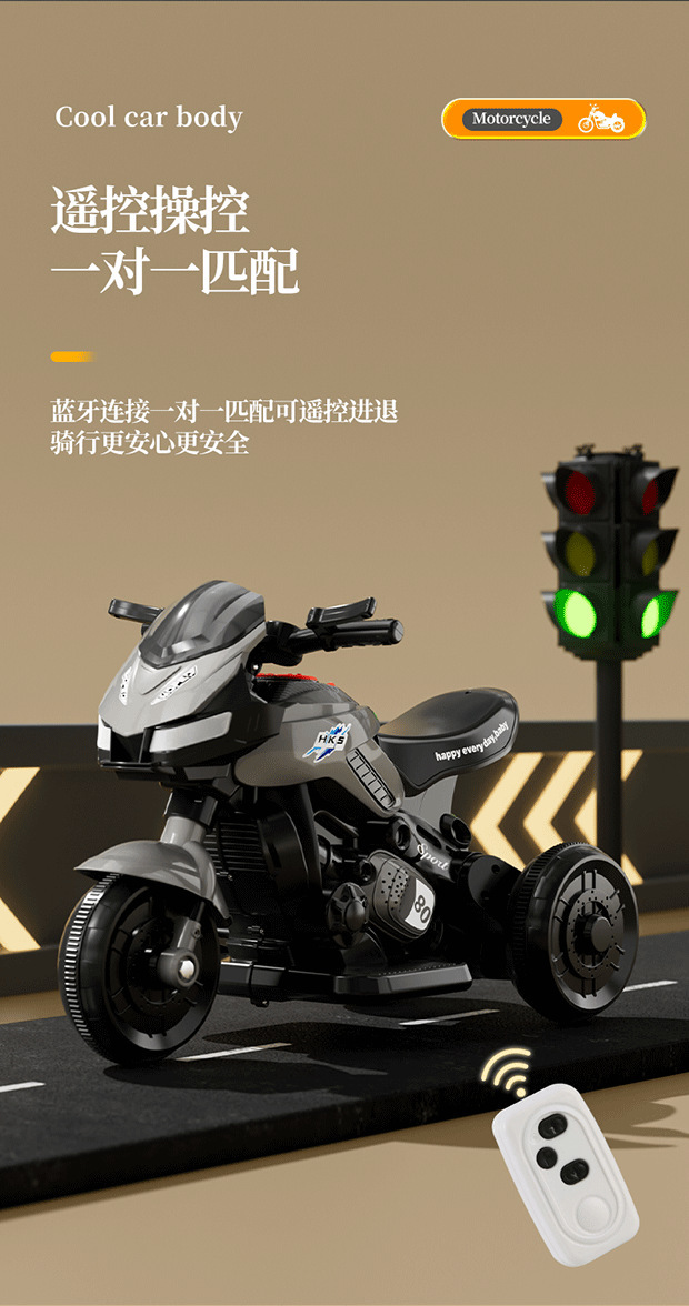 儿童电动摩托车可骑行玩具车可坐电动车充电遥控小孩遥控电瓶车