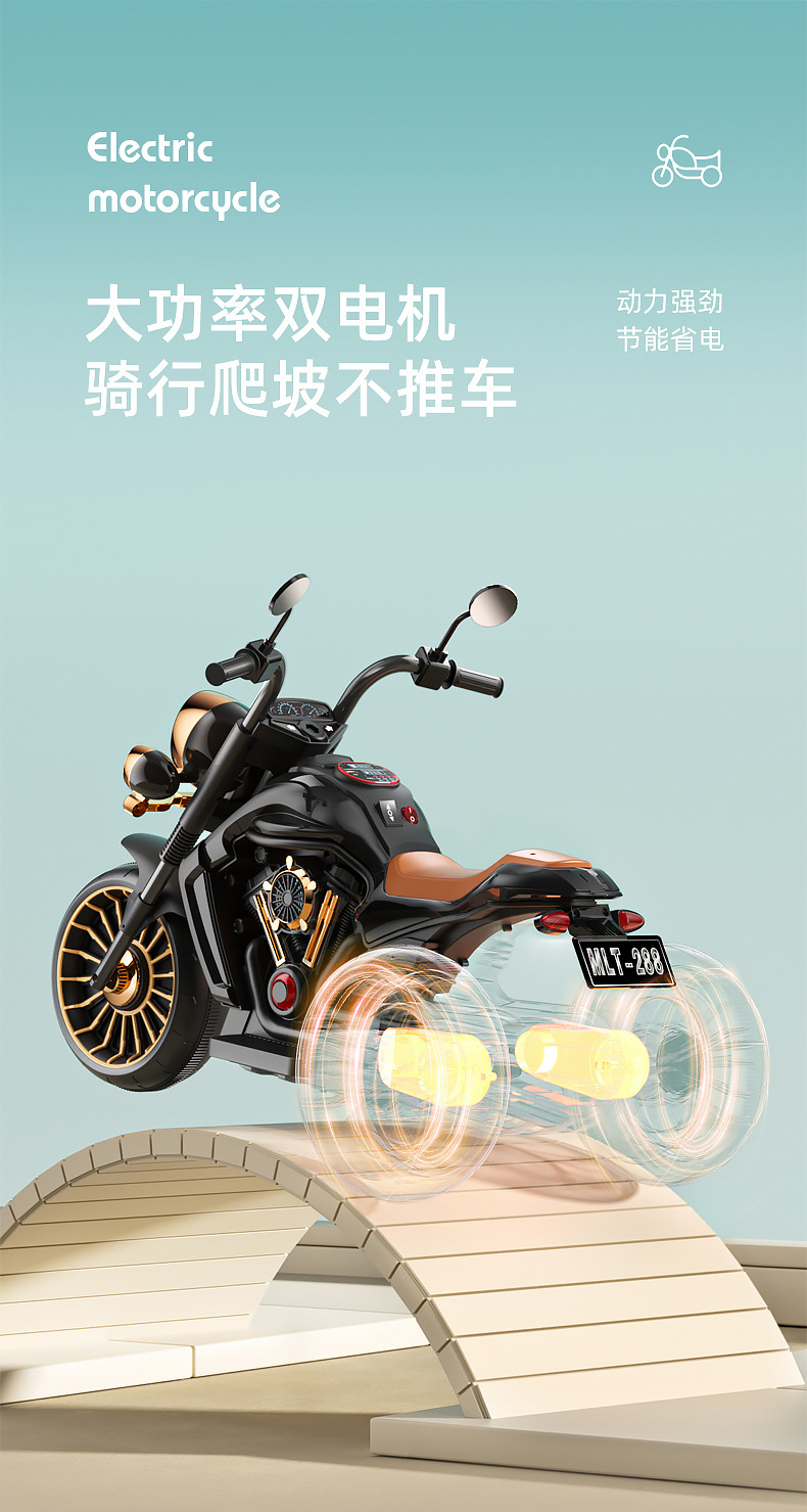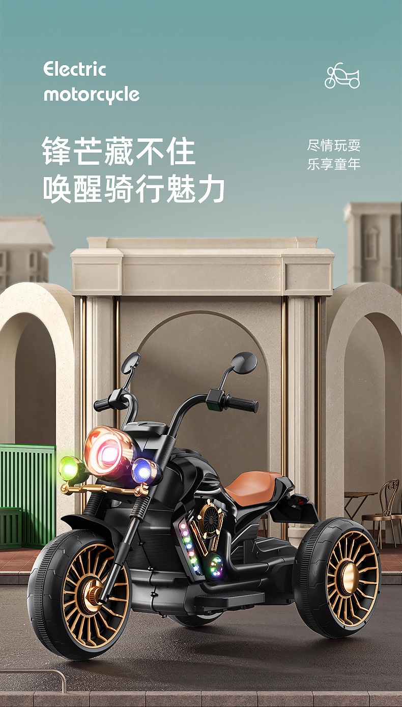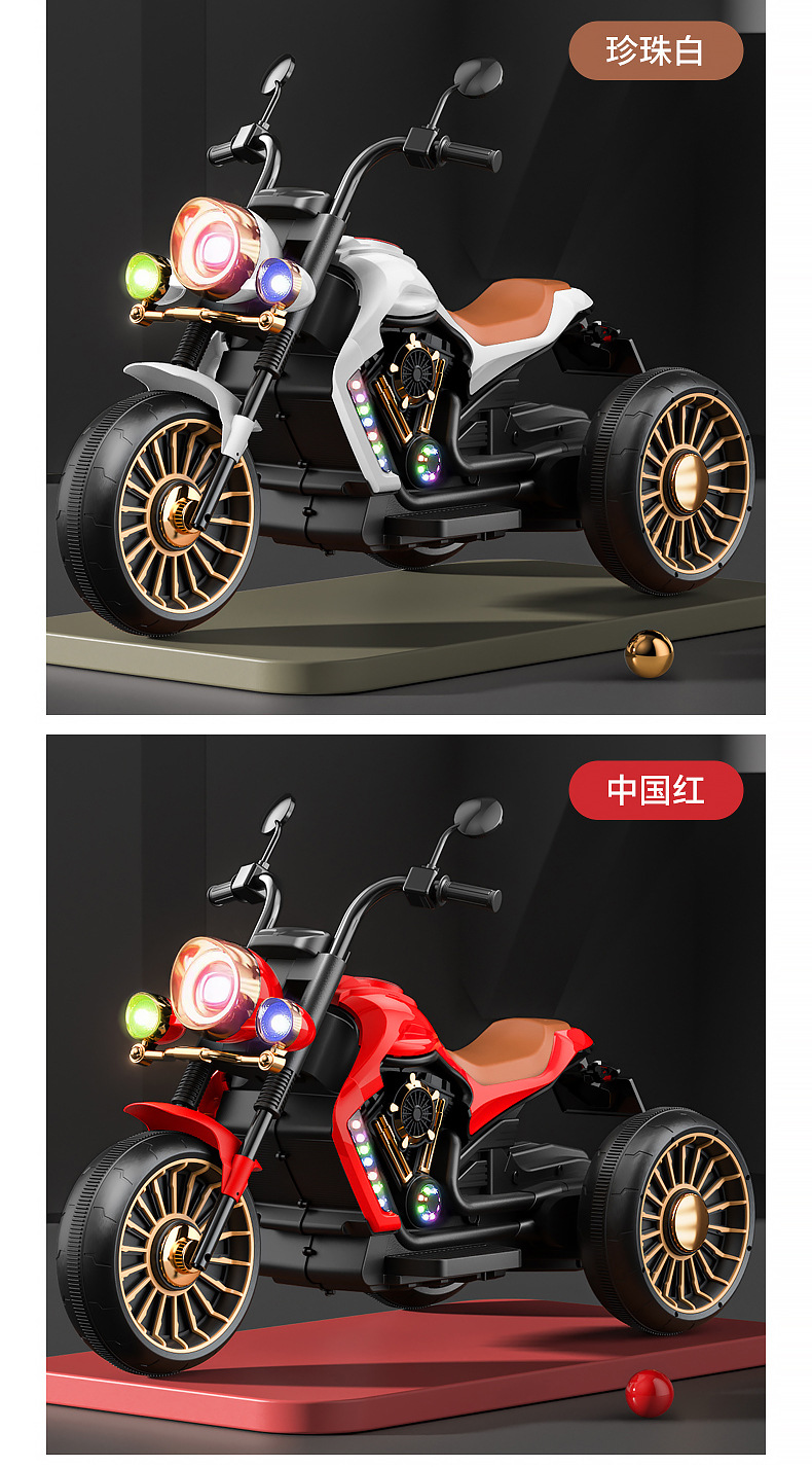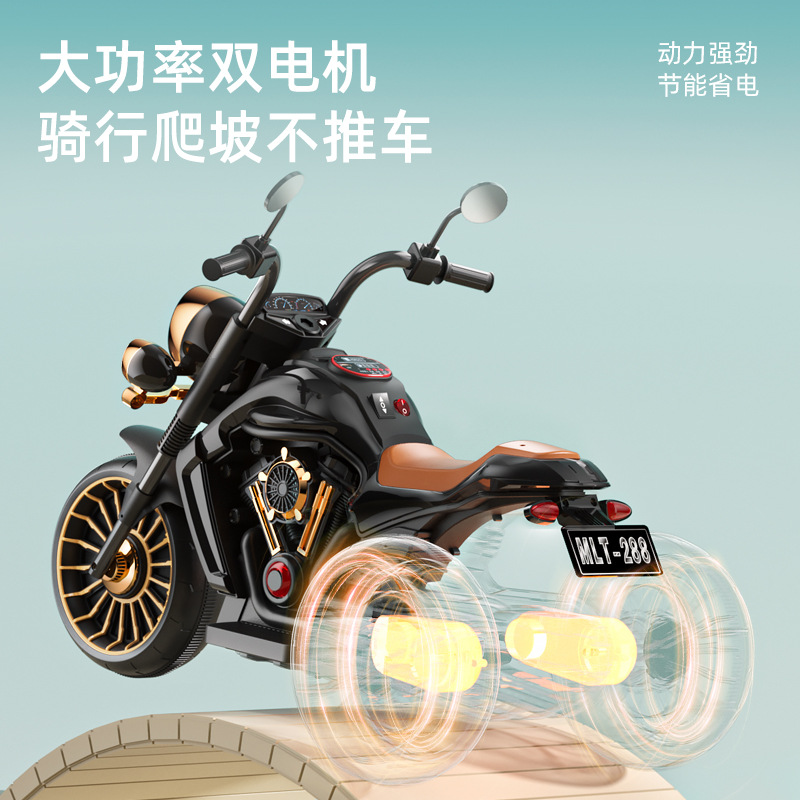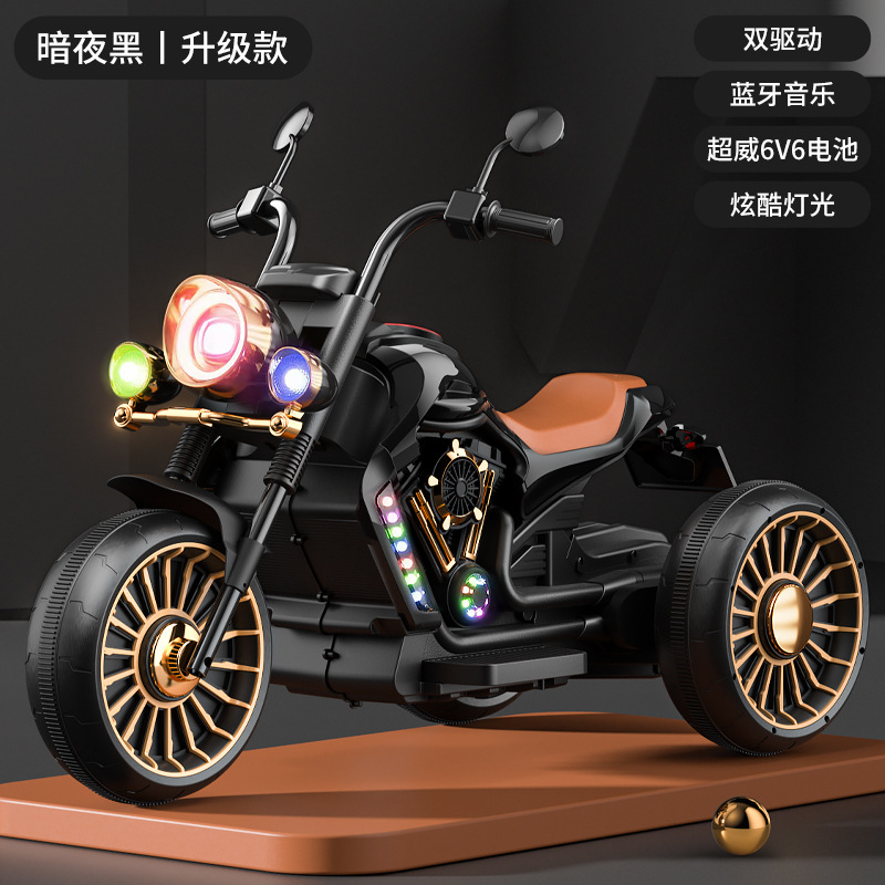 儿童电动摩托车男女宝宝玩具车可坐人小孩充电三轮车电瓶车双驱