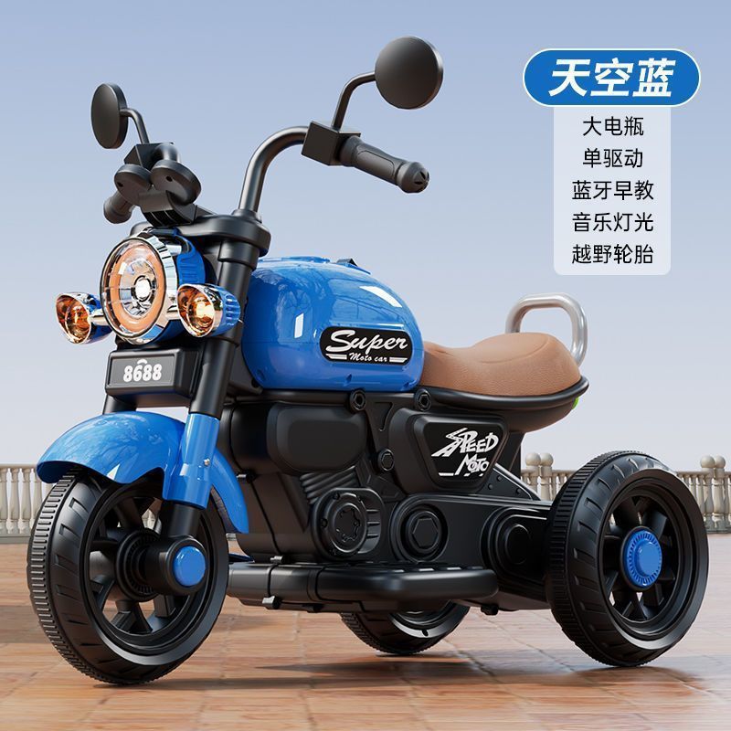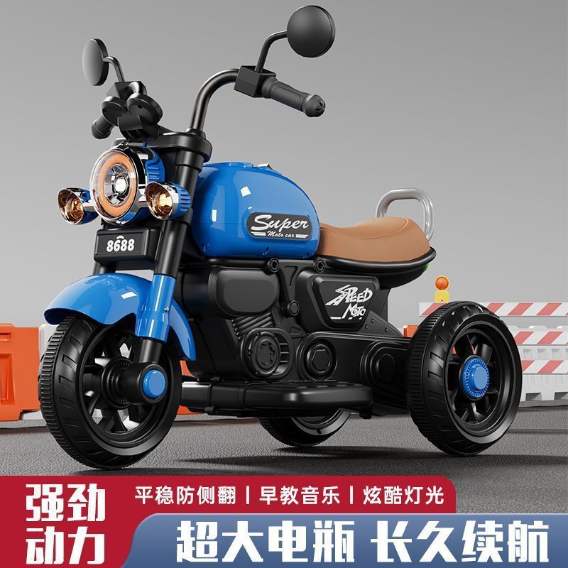 儿童电动摩托车三轮车男女孩宝宝电瓶车小孩可坐人充电遥控玩具车