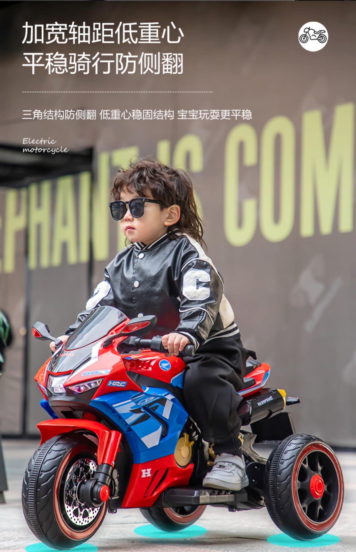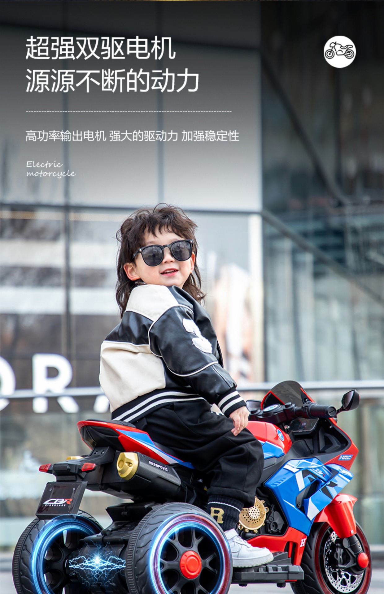 儿童电动摩托车男女孩充电三轮车宝宝可坐玩具车遥控双驱动电瓶车