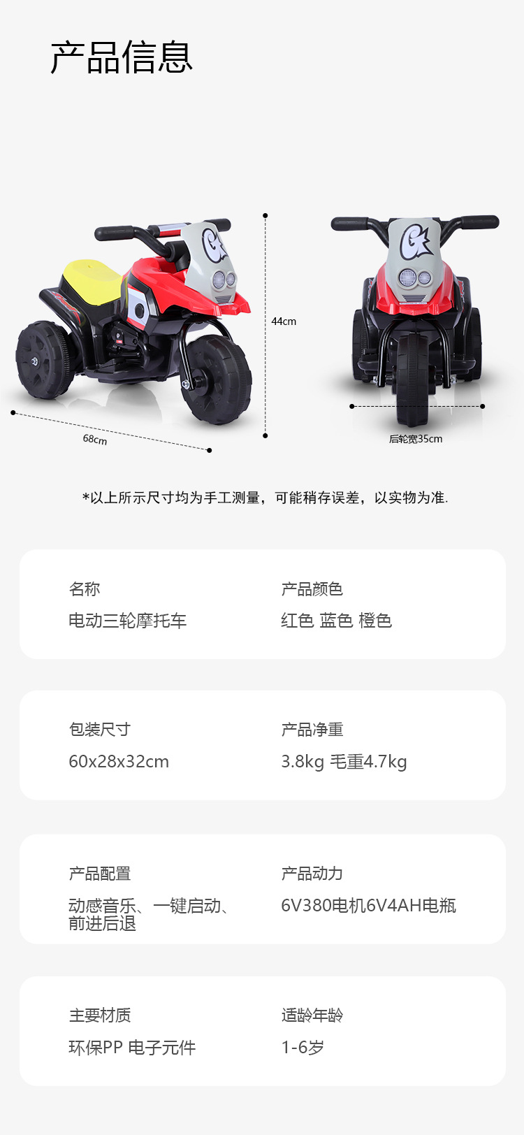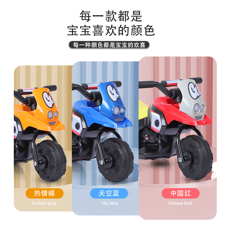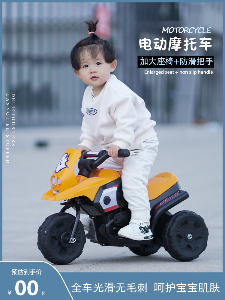 新款儿童电动摩托车三轮车男女孩宝宝电瓶车小孩可坐人充电玩具车