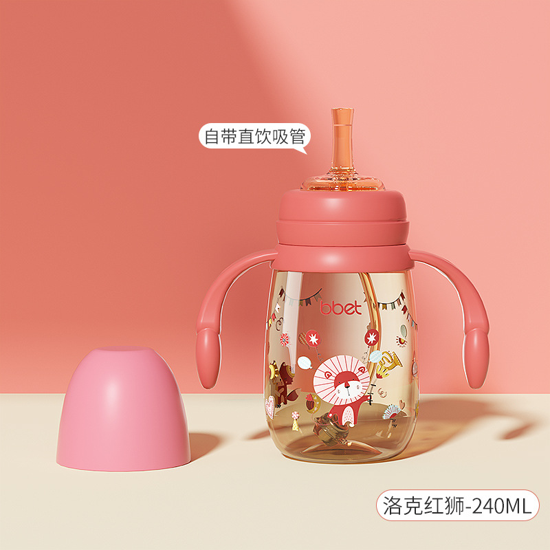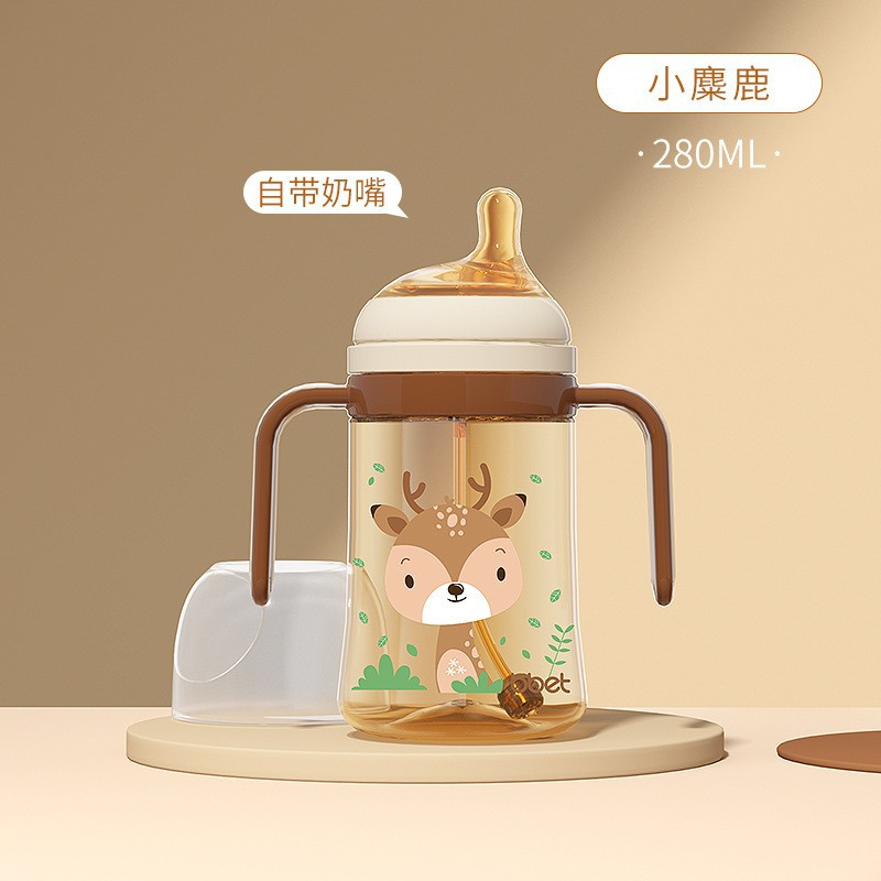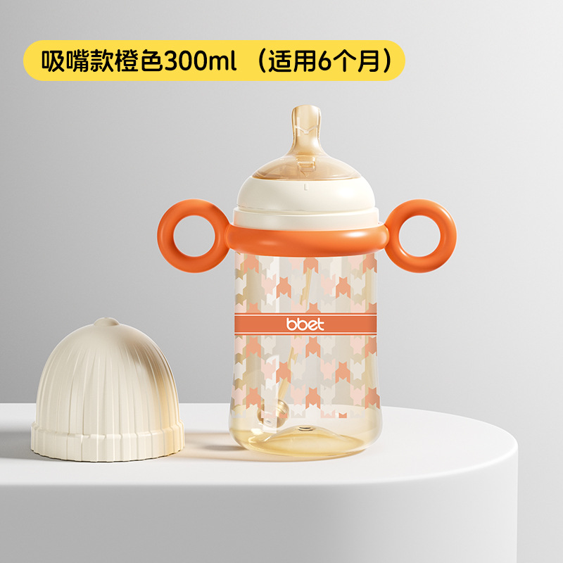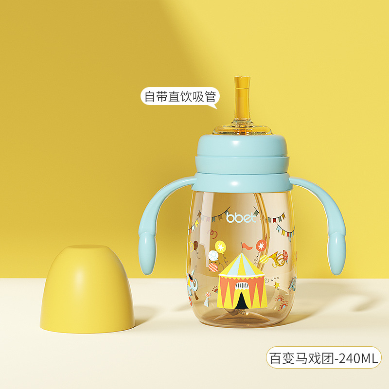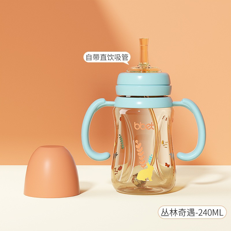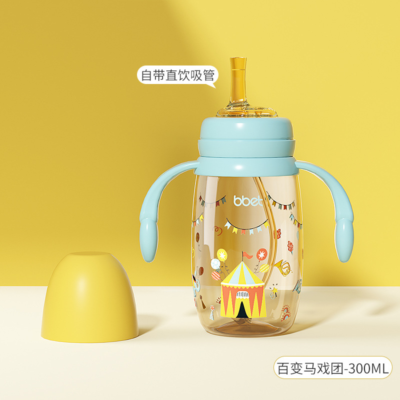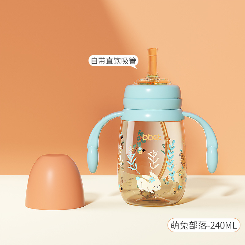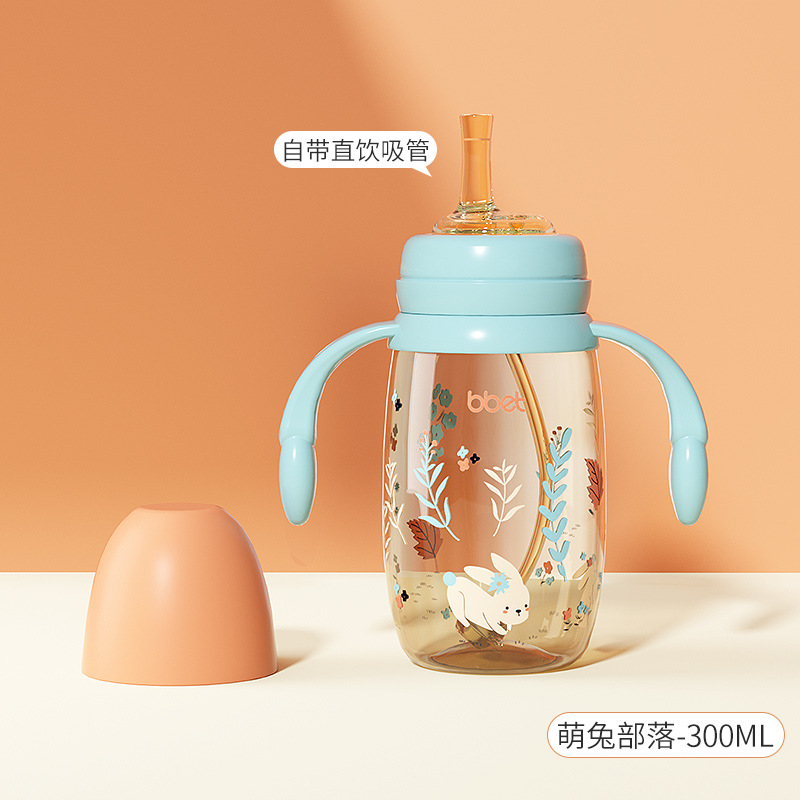 巴比象儿童吸管奶瓶1-3带柄刻度PPSU学饮杯防呛防漏防摔宽口奶瓶